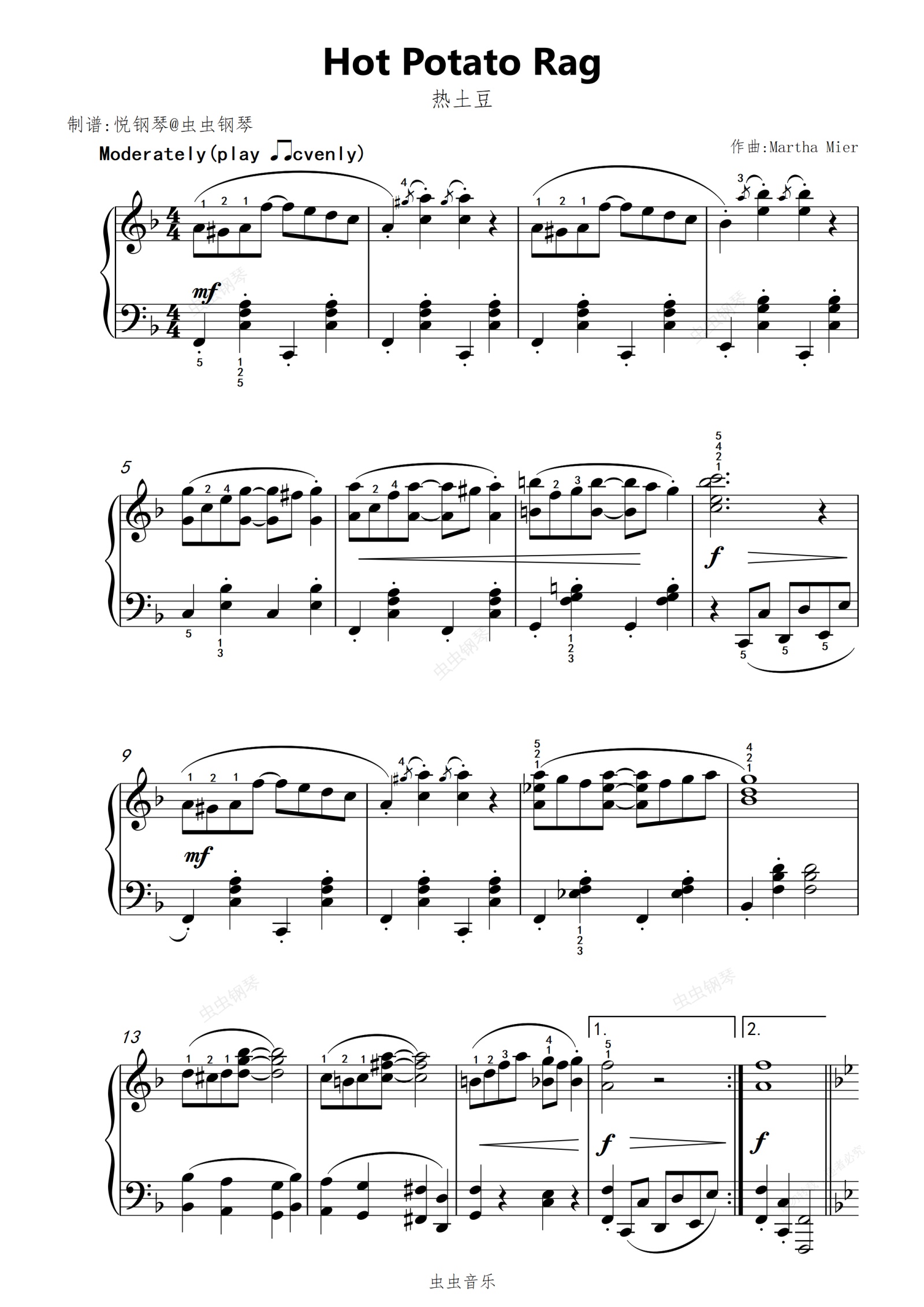 钢琴谱:热土豆// Hot Potato Rag【爵士钢琴-超好听】