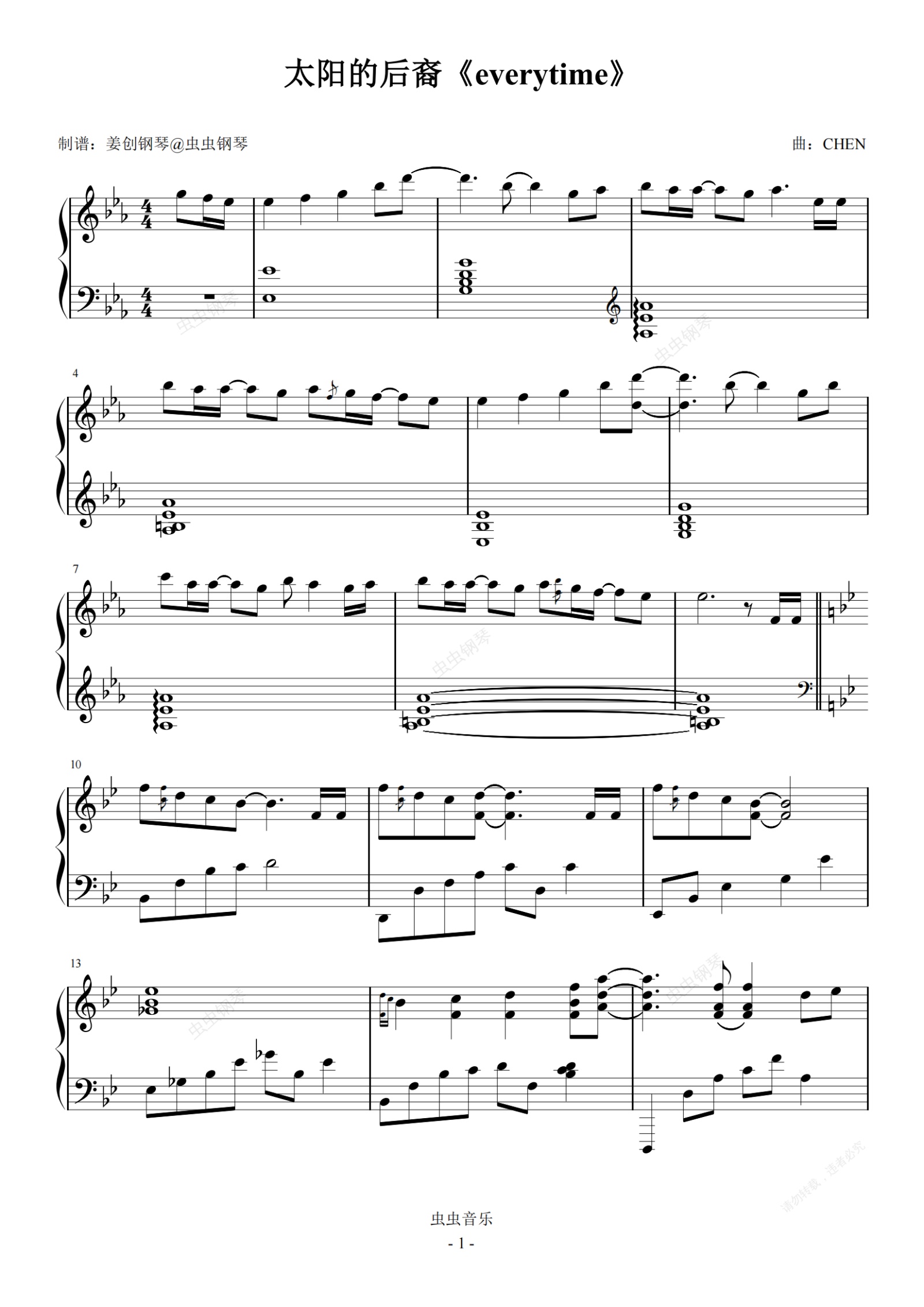 钢琴谱:太阳的后裔《everytime》完美演奏版