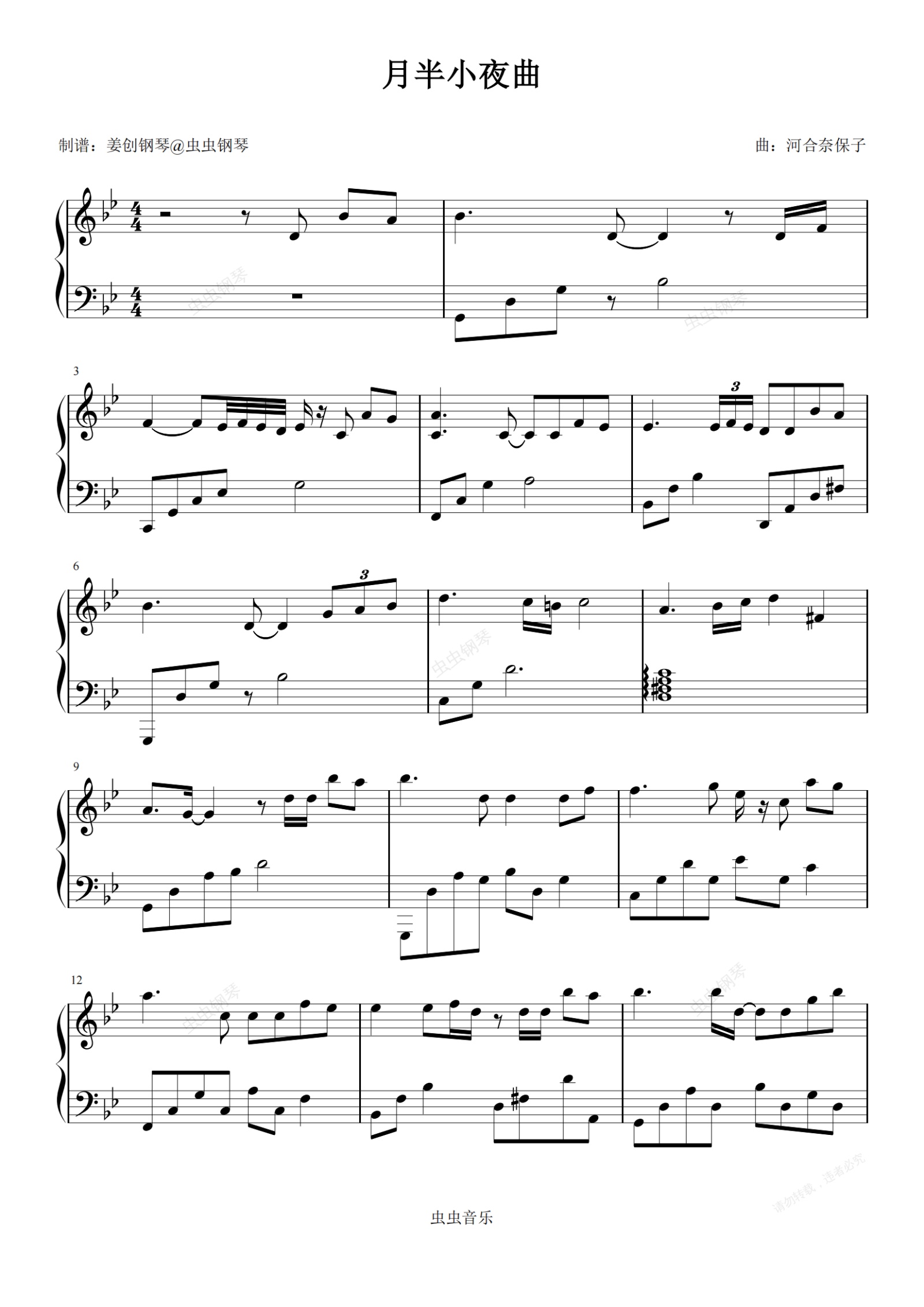 钢琴谱:李克勤《月半小夜曲》完美演奏版