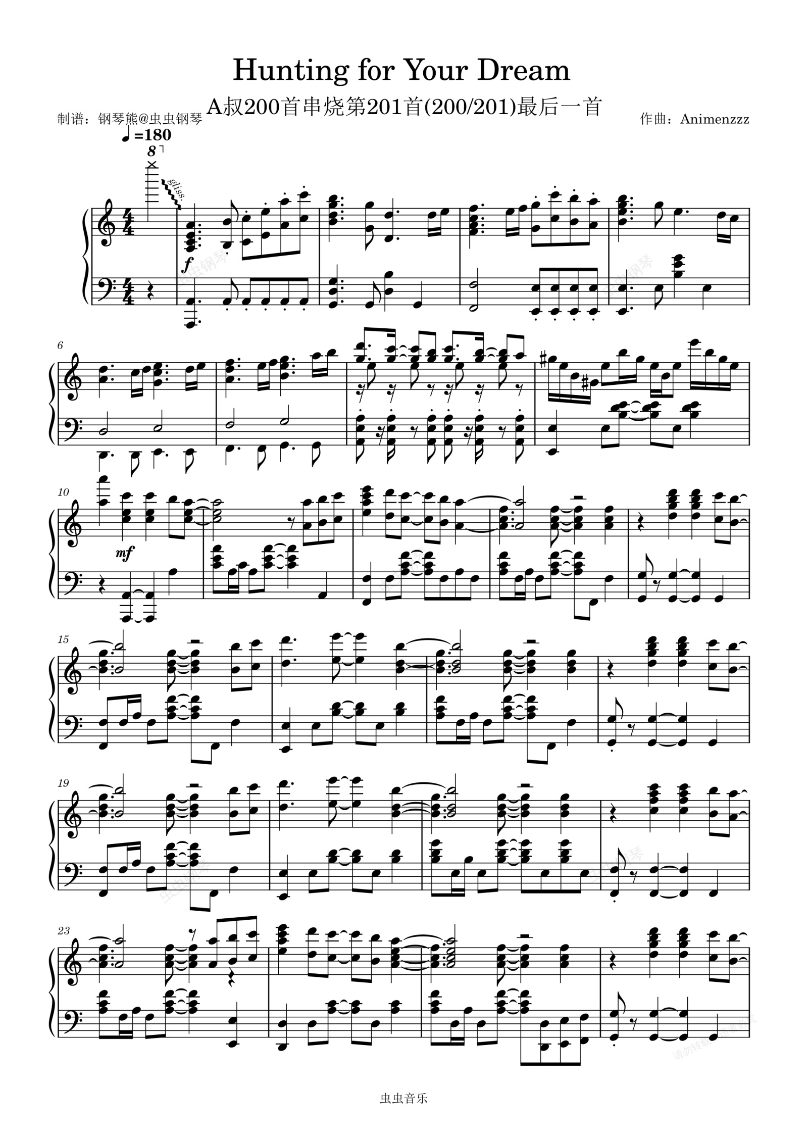 钢琴谱:C大调 全职猎人《Hunt for you Dream》A叔200首串烧 末尾曲目 喜欢的兄弟记得点♥♥♥👇👇👇