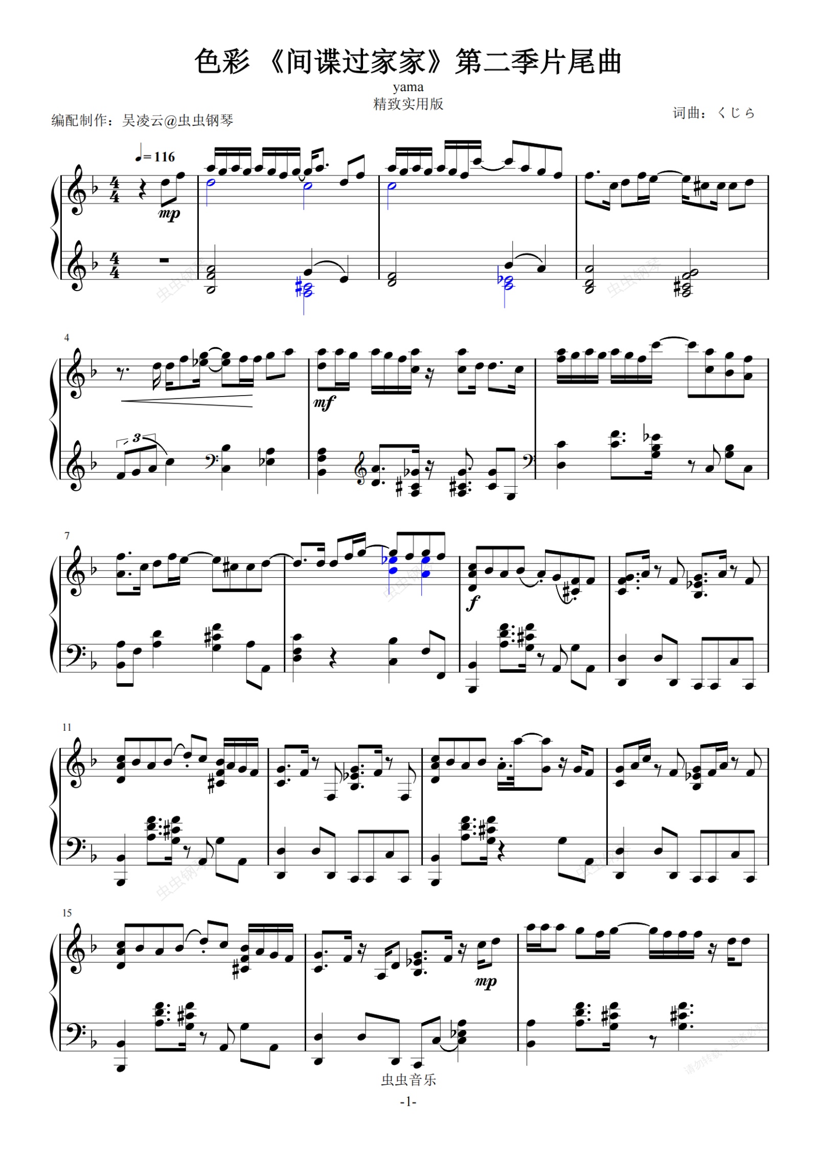 钢琴谱:色彩 《间谍过家家》第二季片尾曲 yama 吴凌云钢琴实用版