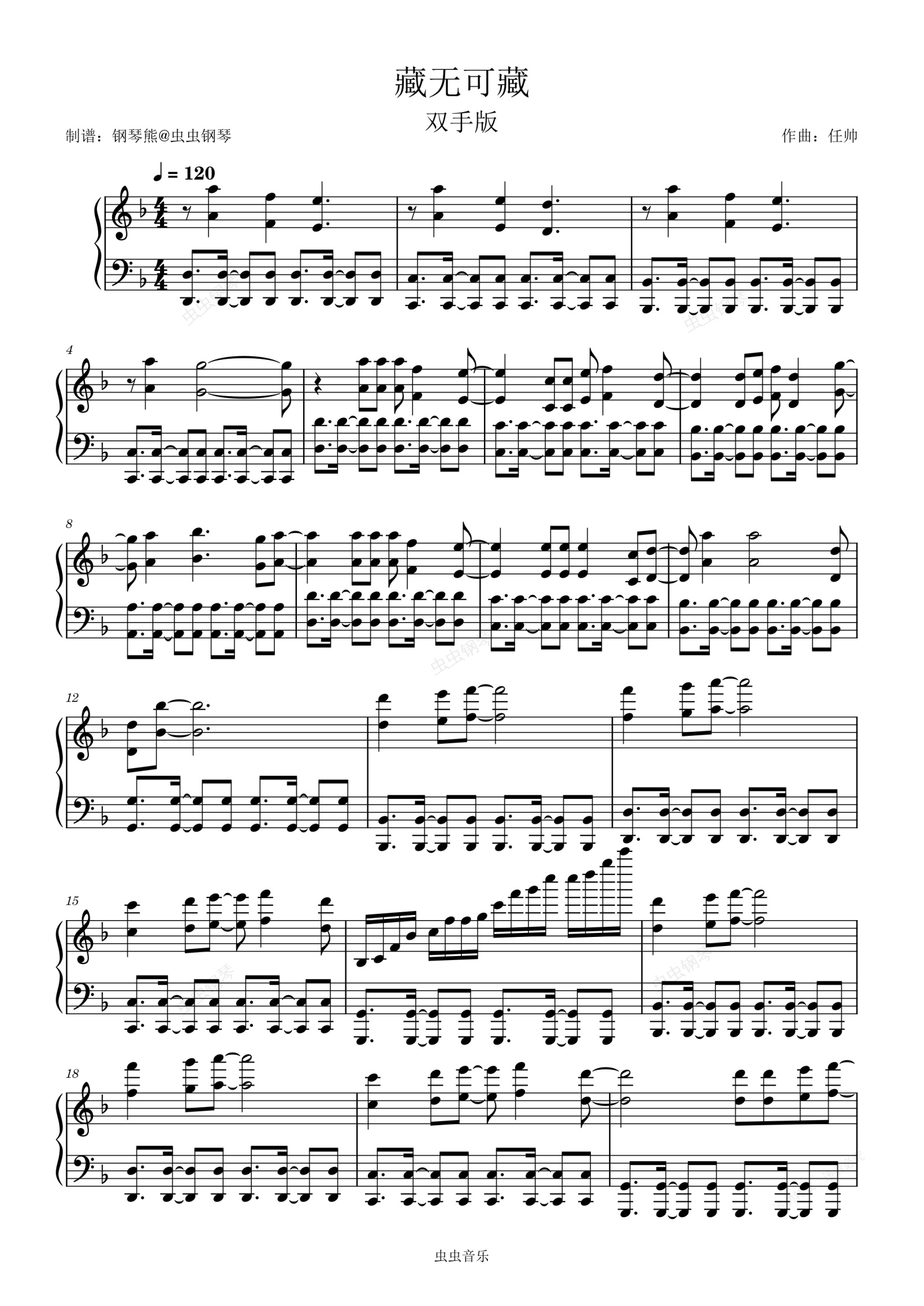 钢琴谱:狂飙《藏无可藏》双手版 极致还原版~