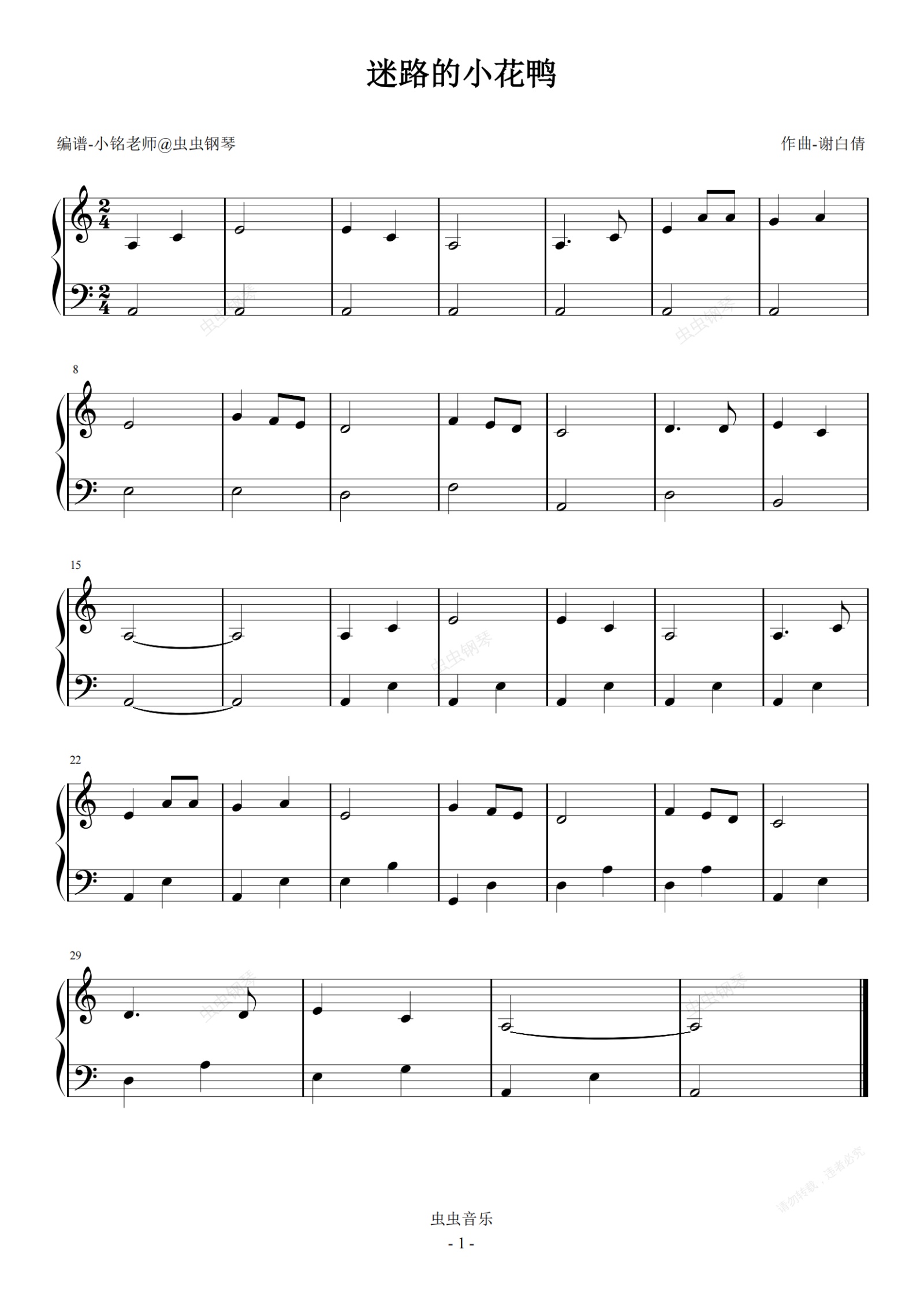 钢琴谱:迷路的小花鸭【快乐学儿歌】