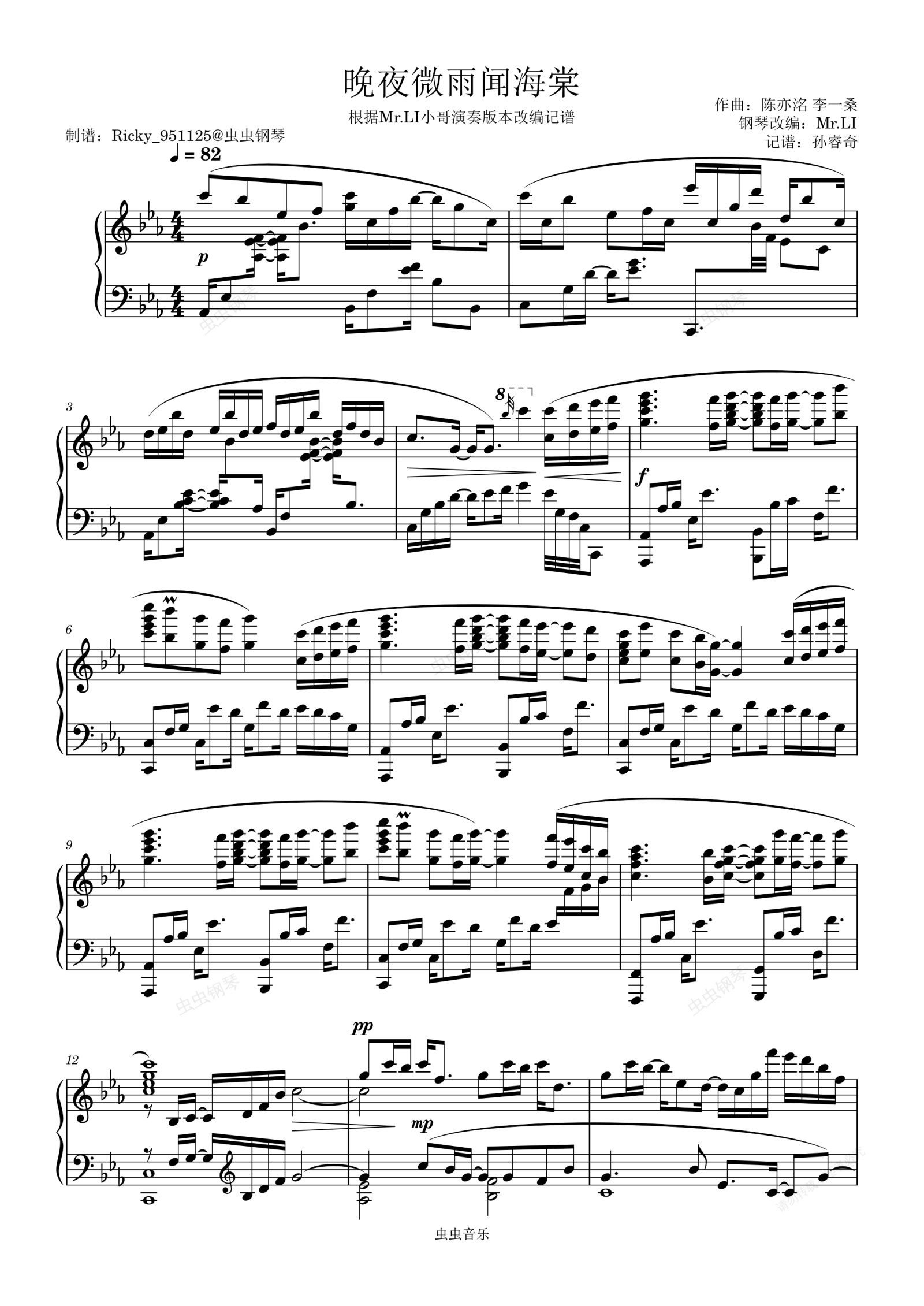 钢琴谱:晚夜微雨问海棠--超然超还原独奏版