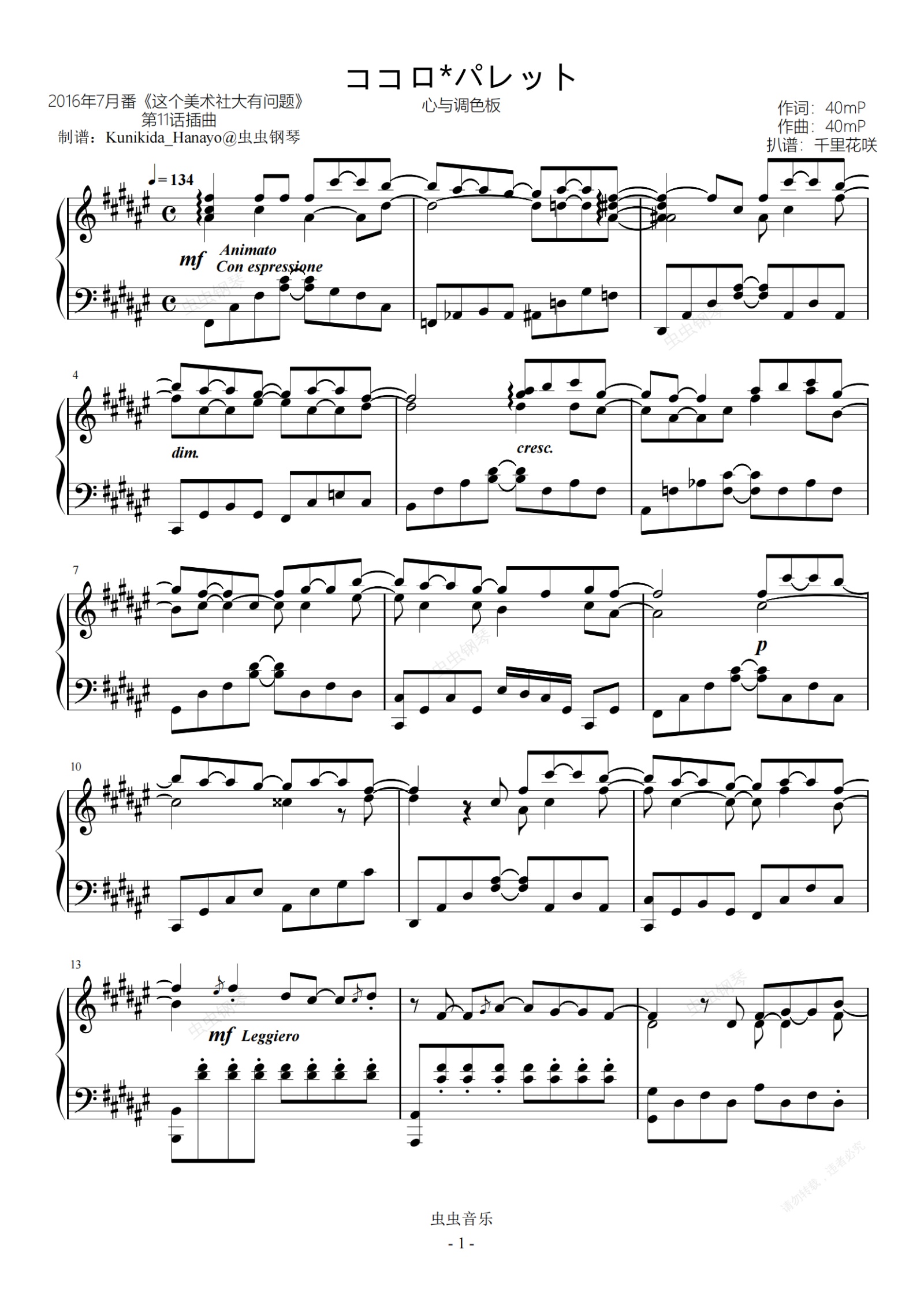 钢琴谱:【经典番】这个美术社大有问题-插曲~ココロ*パレット(心与调色板)