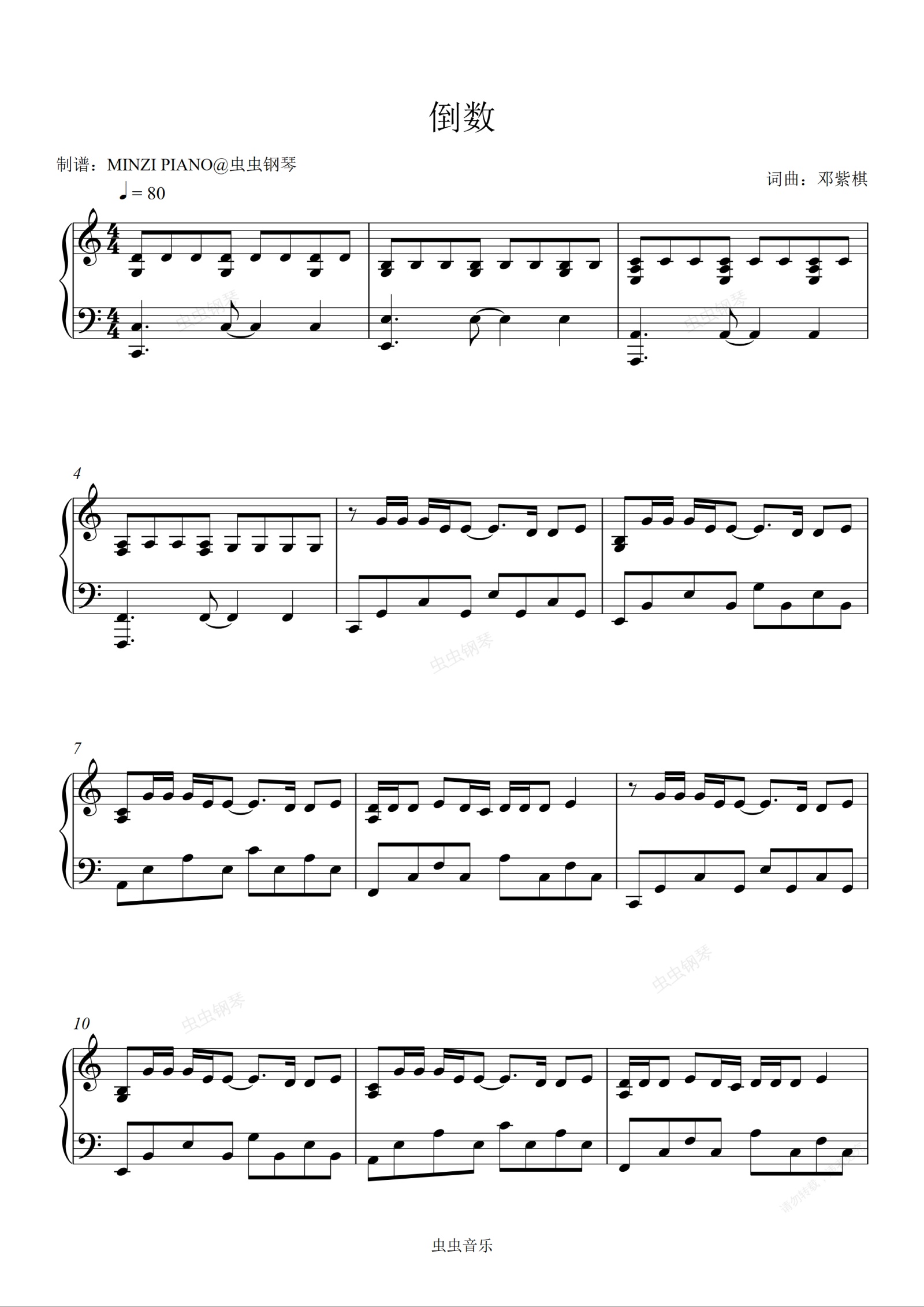 钢琴谱:倒数-邓紫棋 C调