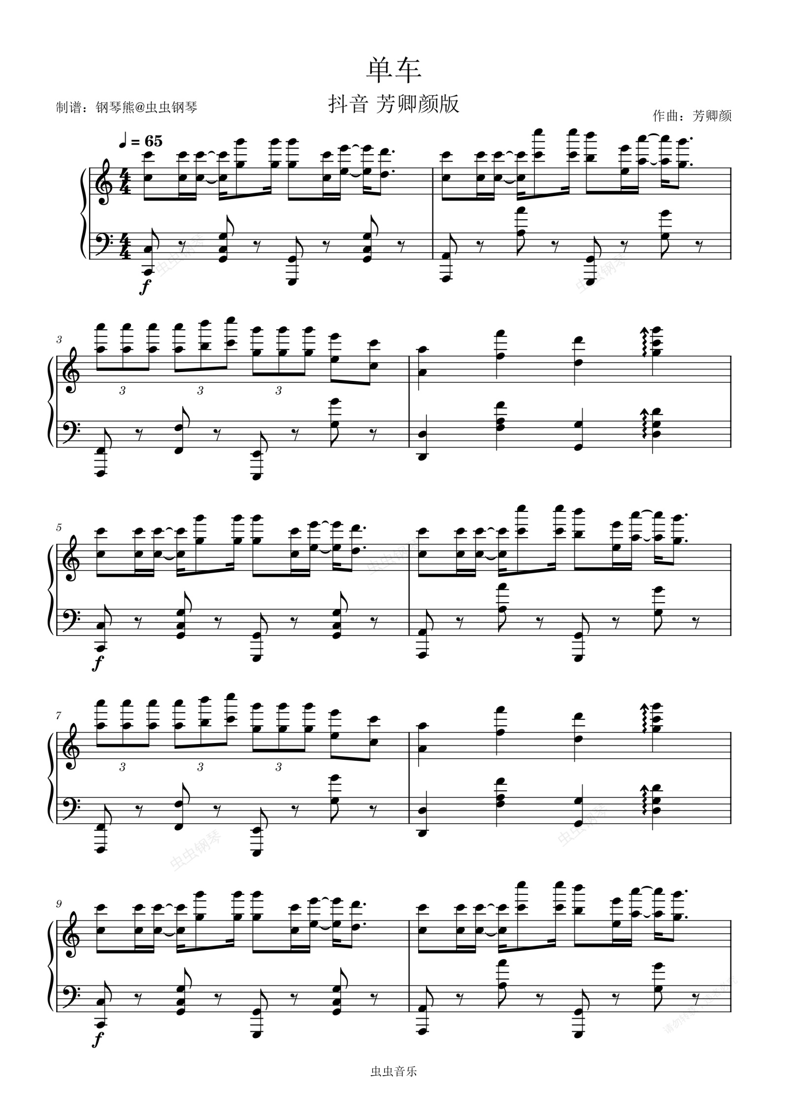 钢琴谱:C大调 抖音 芳卿颜版《单车》 喜欢的兄弟记得点♥♥♥👇👇👇