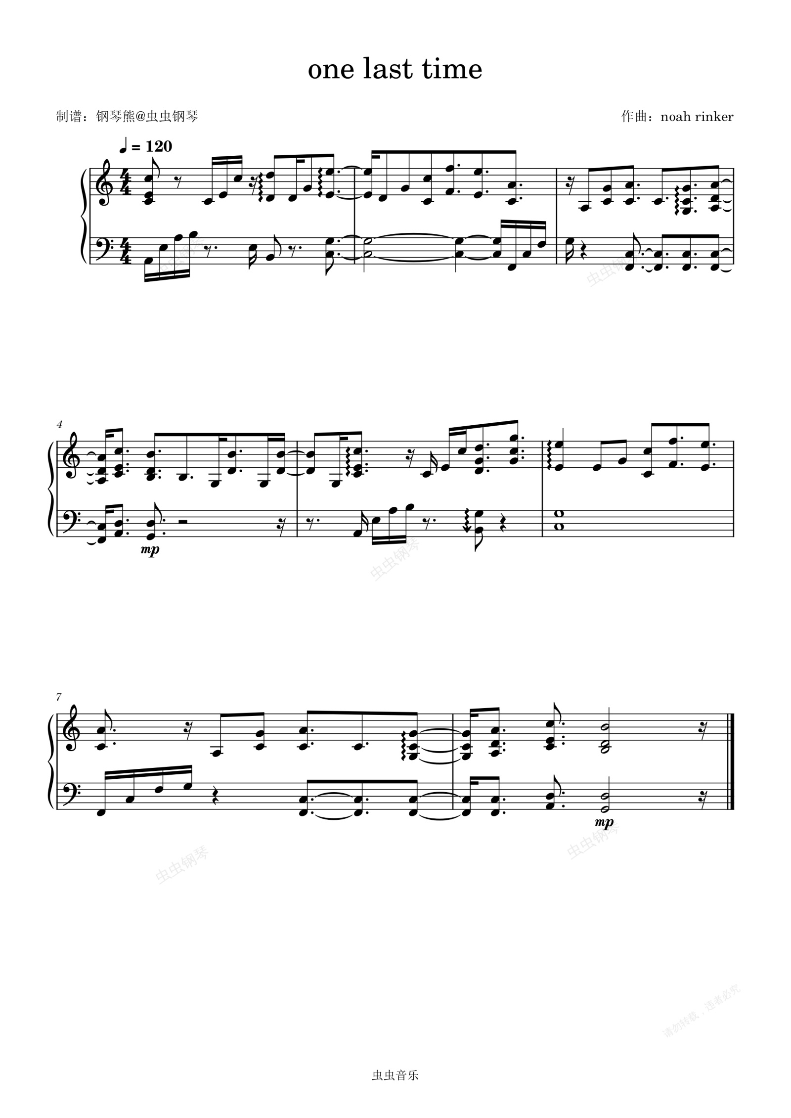 钢琴谱:C大调《one last time》钢琴极限琶音版~ 喜欢的朋友记得点♥♥♥👇👇👇