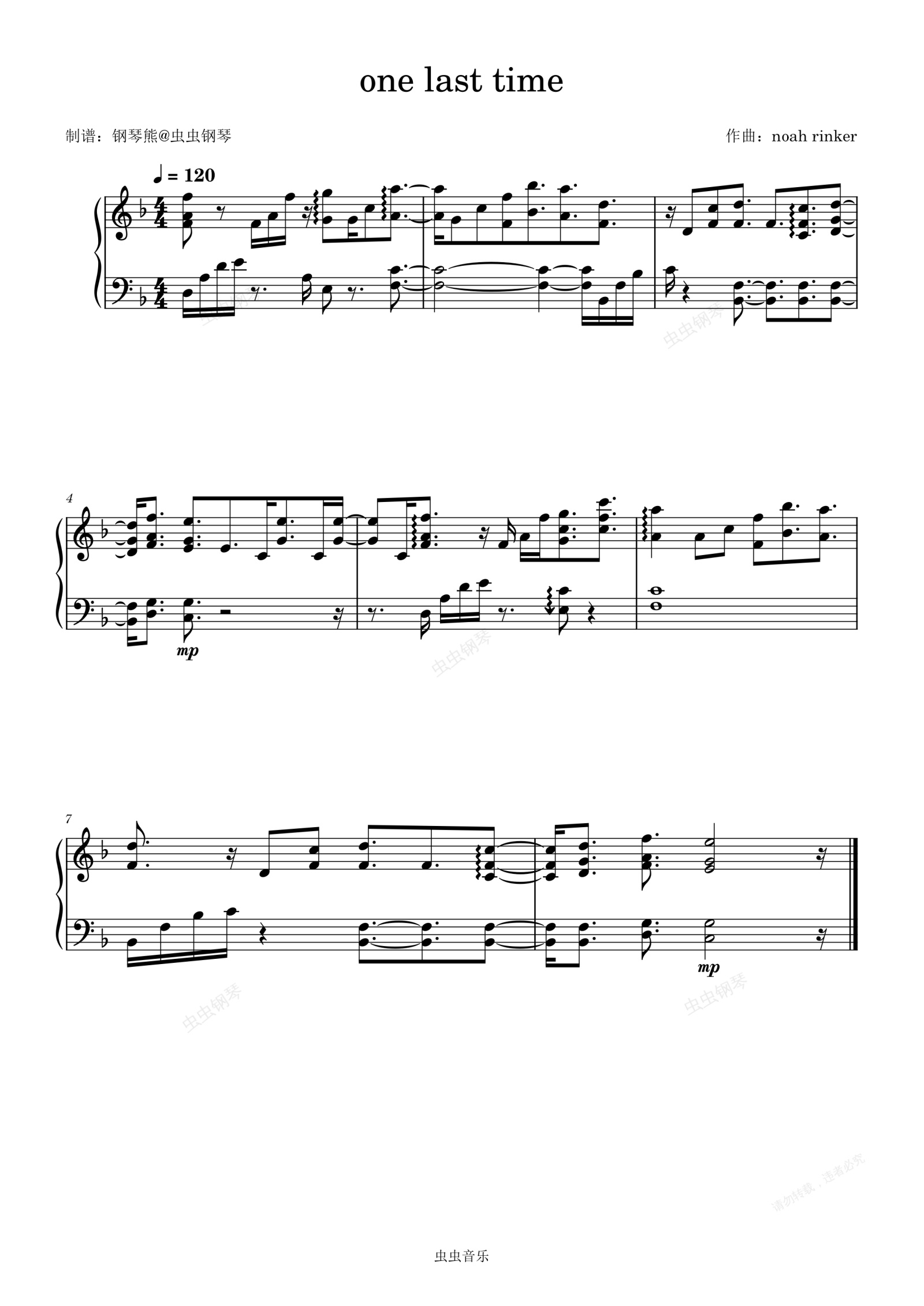 钢琴谱:《one last time》钢琴极限琶音版~ 喜欢的朋友记得点♥♥♥👇👇👇