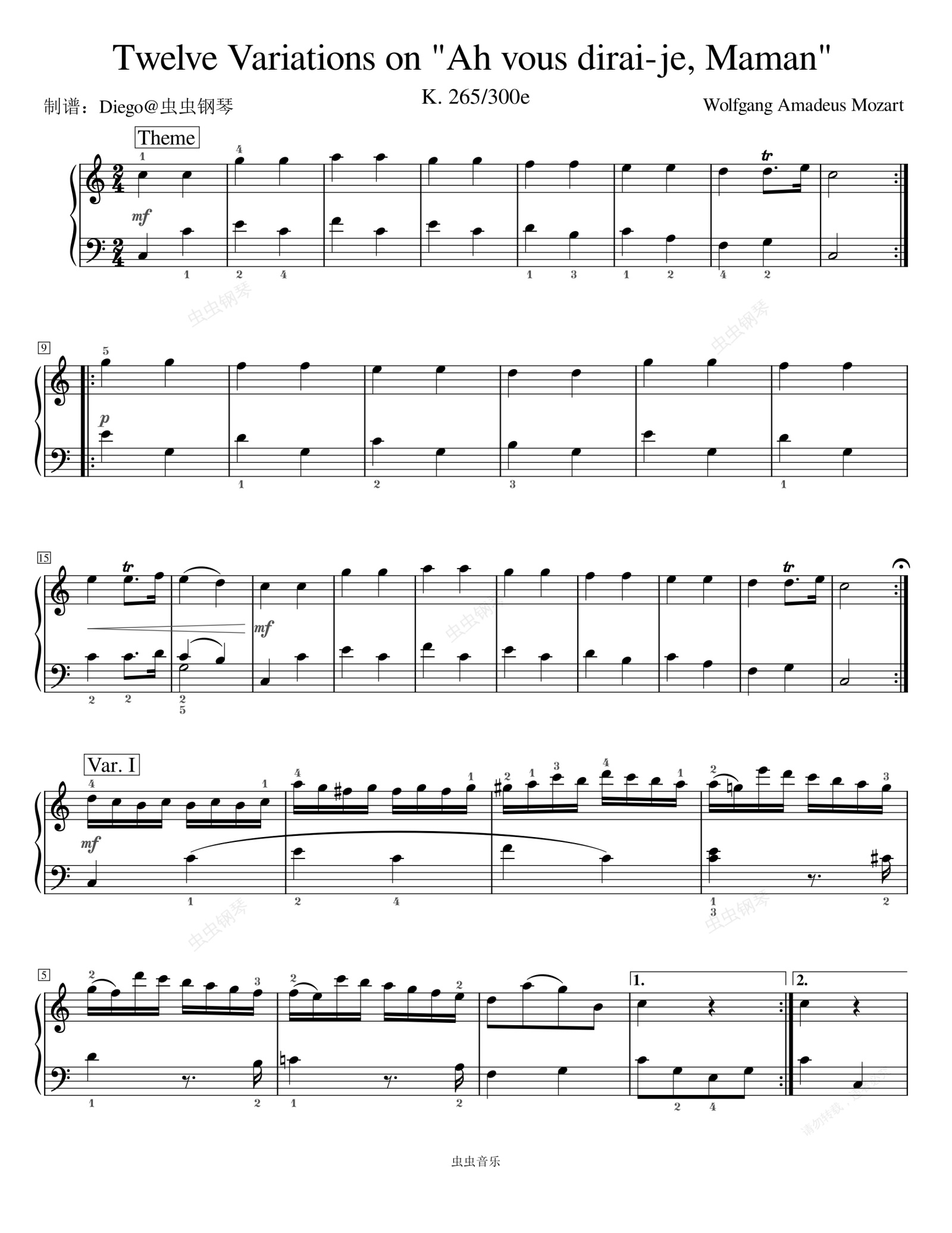 钢琴谱:小星星变奏曲(12变奏完整版)Mozart原版12_Variations_on_Ah_vous_dirai-je_maman_K.265300e__Wolfgang_Amadeus_Mozart