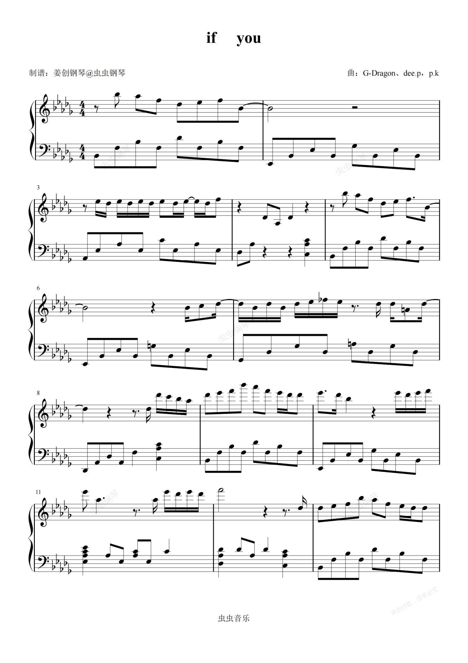 钢琴谱:BIGBANG《IF YOU》原调版 完美演奏版