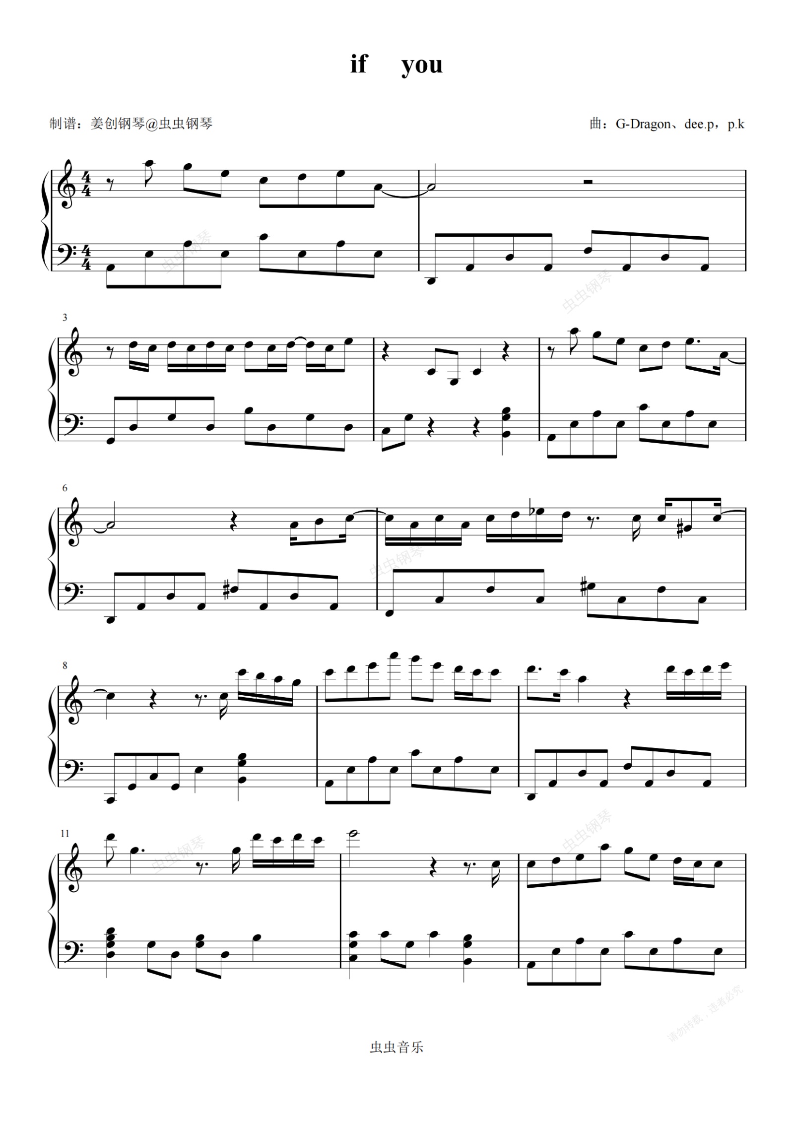 钢琴谱:BIGBANG《IF YOU》C调版 完美演奏版
