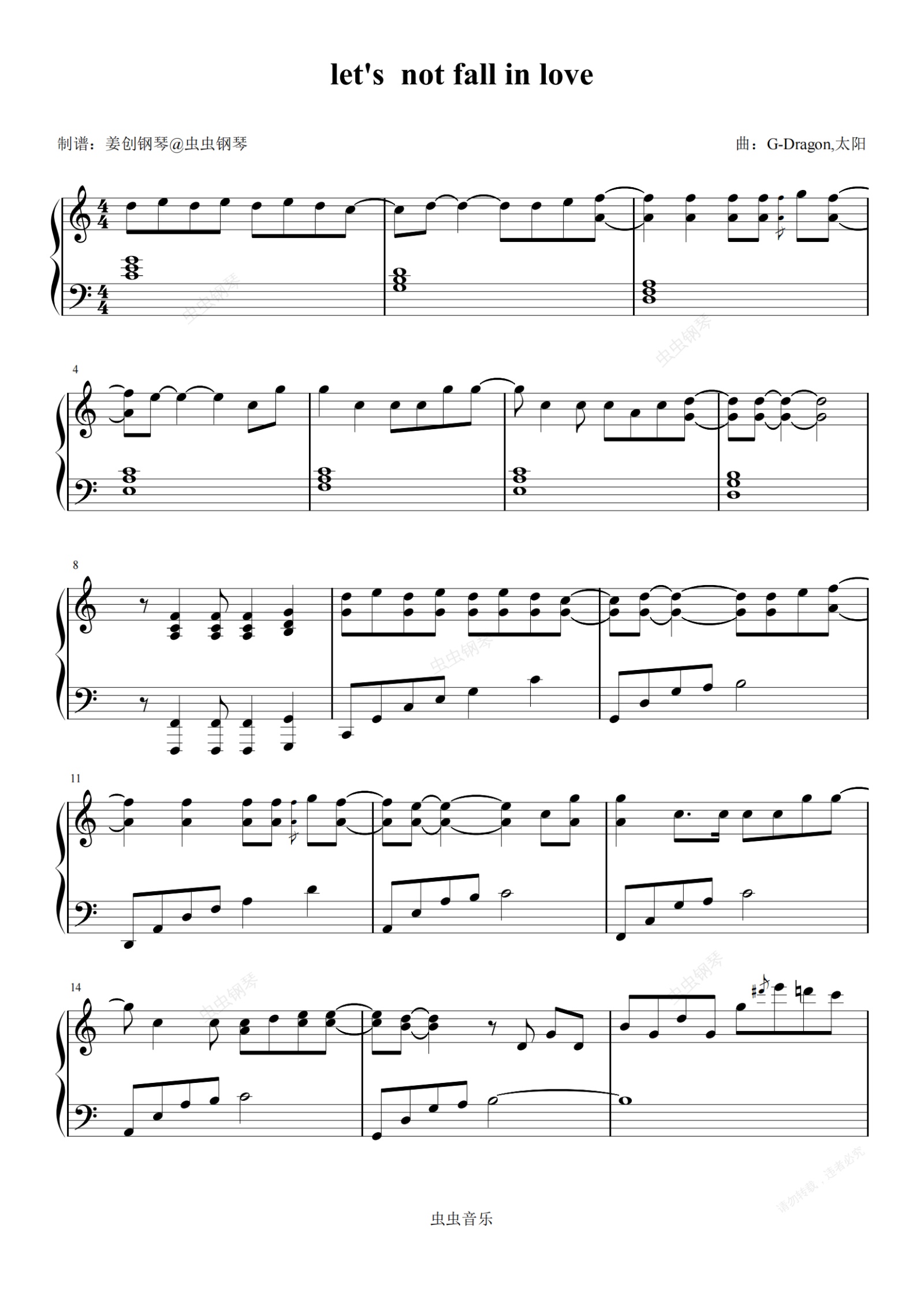 钢琴谱:Bigbang《Let's not fall in love》 完美演奏版