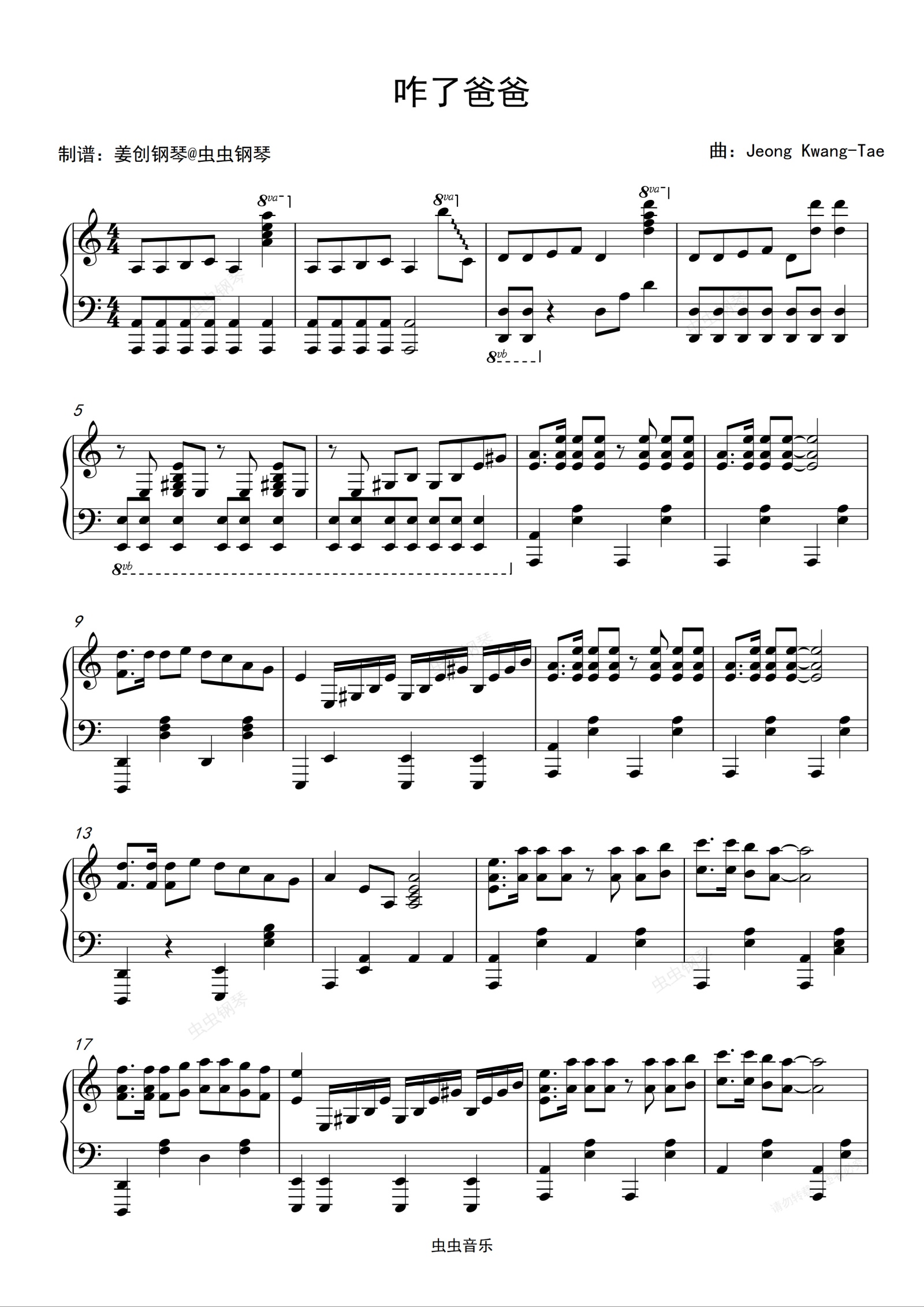 钢琴谱:咋了爸爸(C调版) 完美演奏版