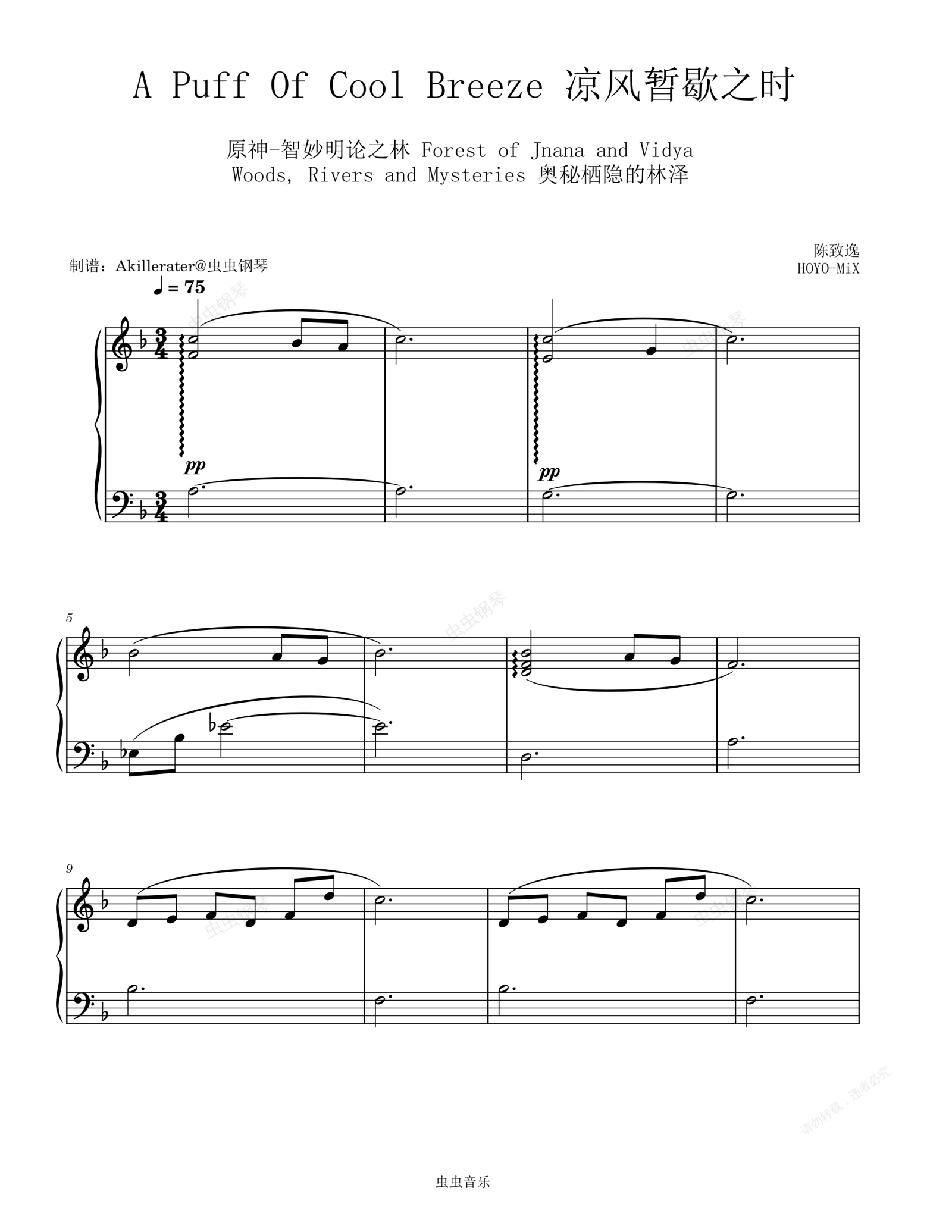 钢琴谱:A Puff Of Cool Breeze 凉风暂歇之时《原神-智妙明论之林 Forest of Jnana and Vidya》
