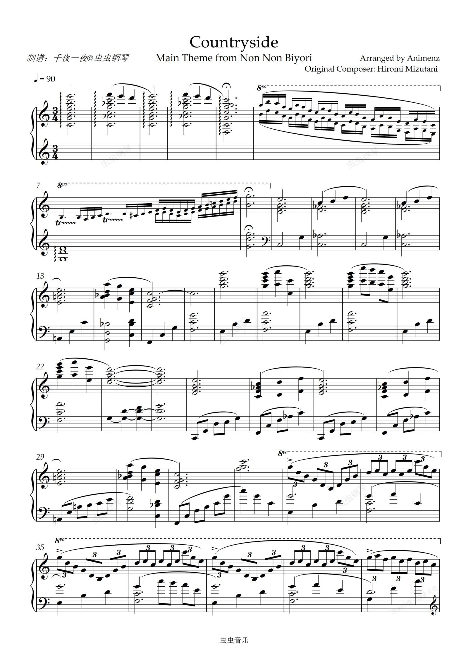 钢琴谱:【Animenzzz】Main Theme Countryside – Non Non Biyori
