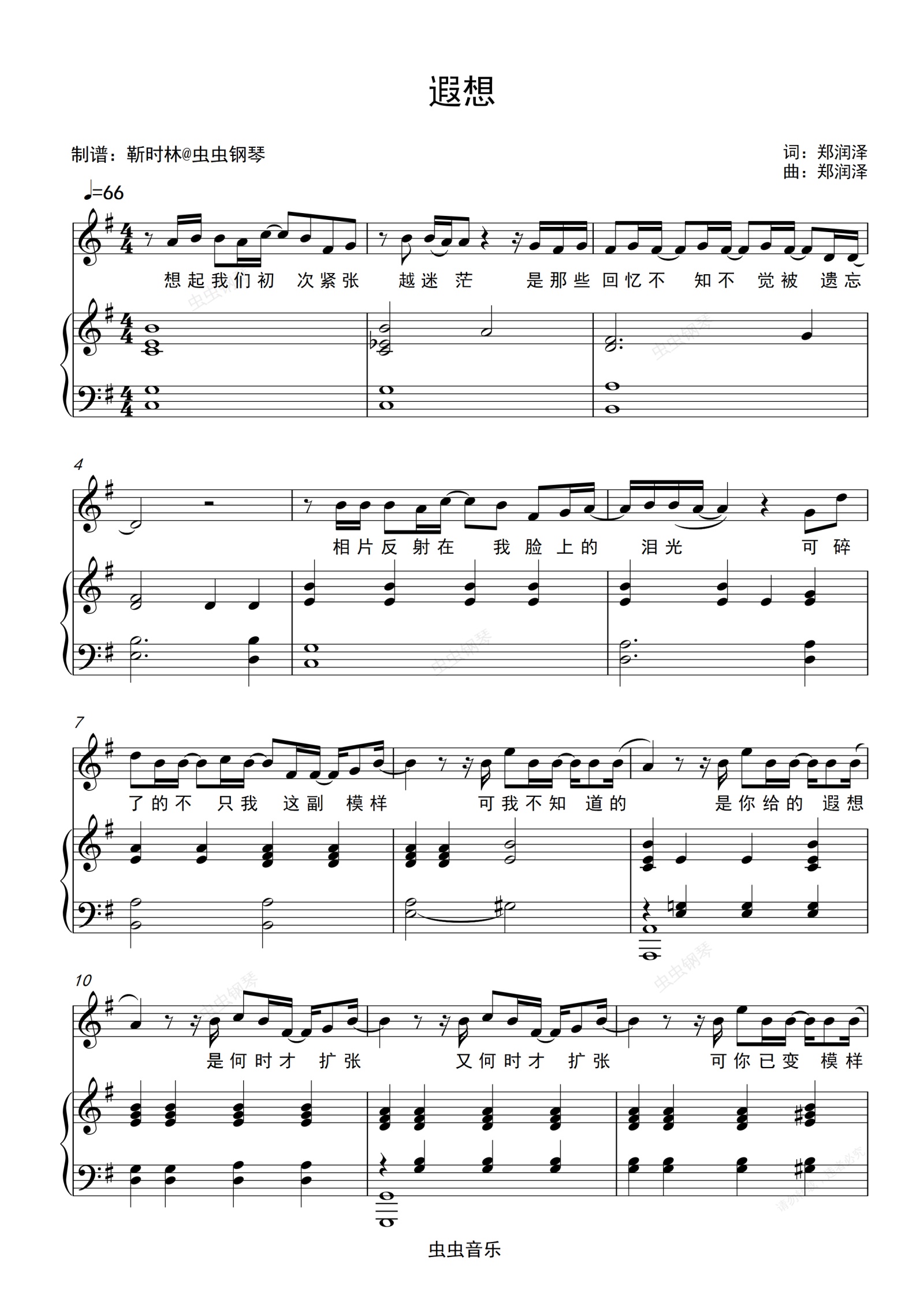 钢琴谱:《遐想》原调高还原带歌词弹唱