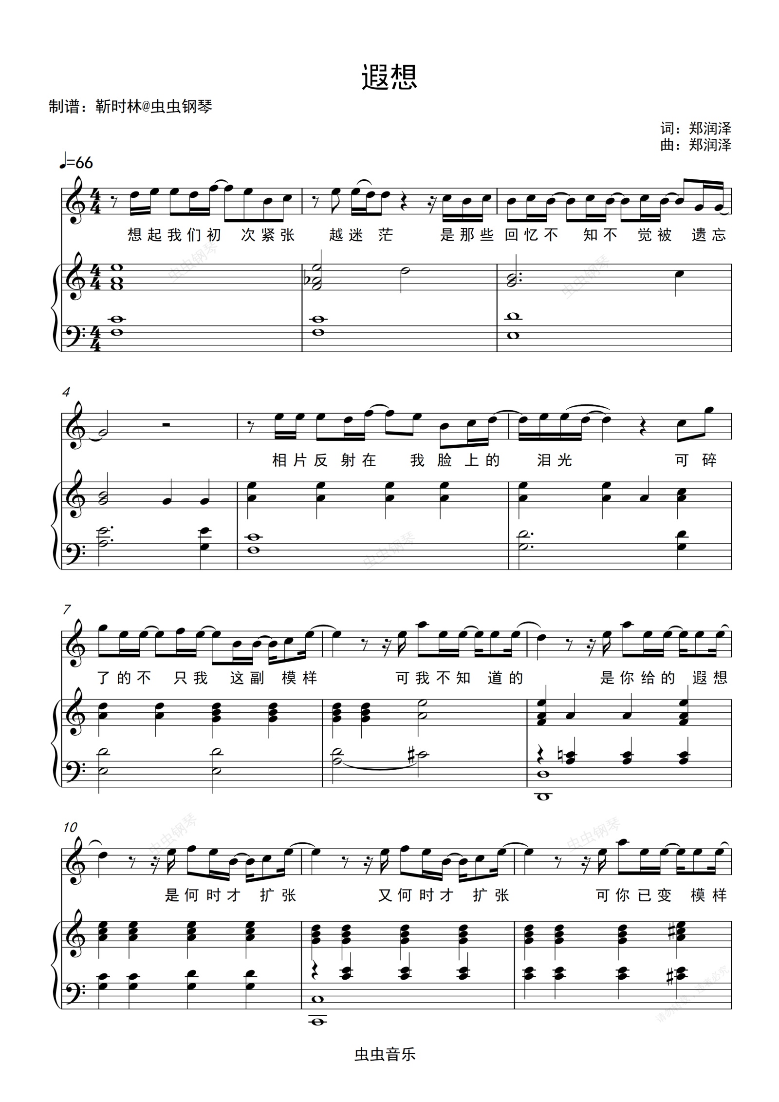 钢琴谱:《遐想》C调高还原带歌词弹唱