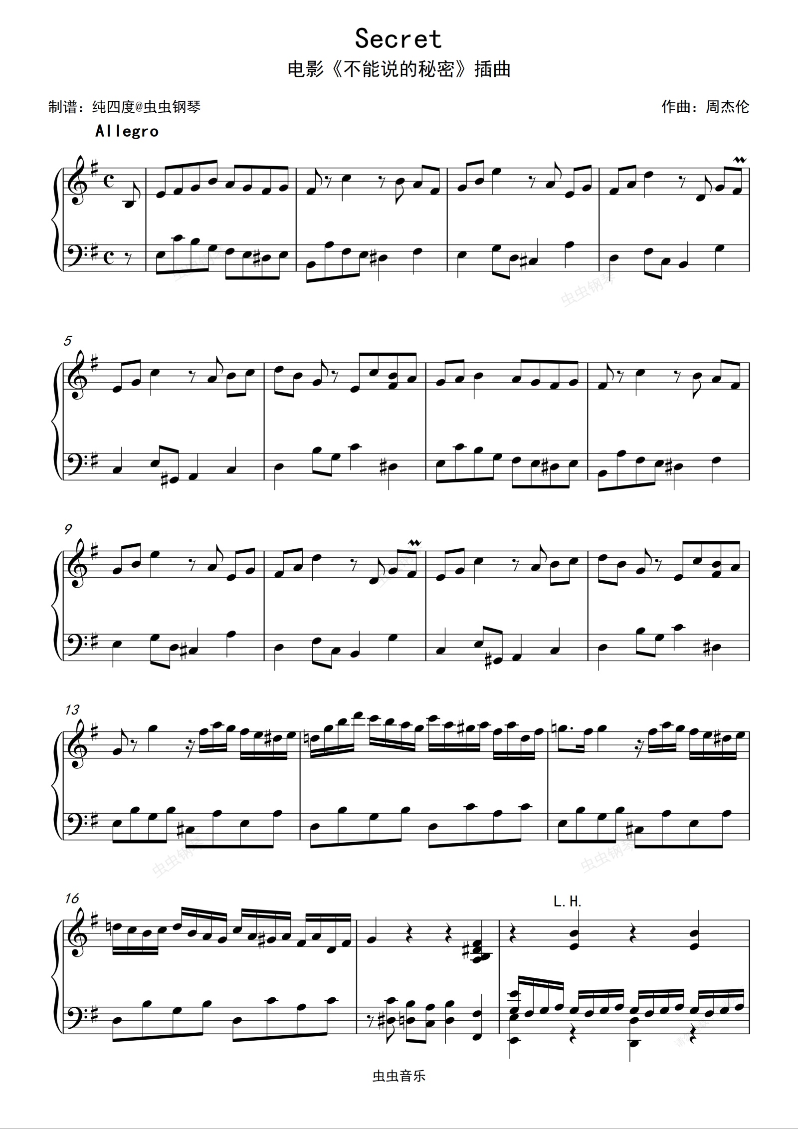 钢琴谱:Secret(电影《不能说的秘密》插曲)完美还原