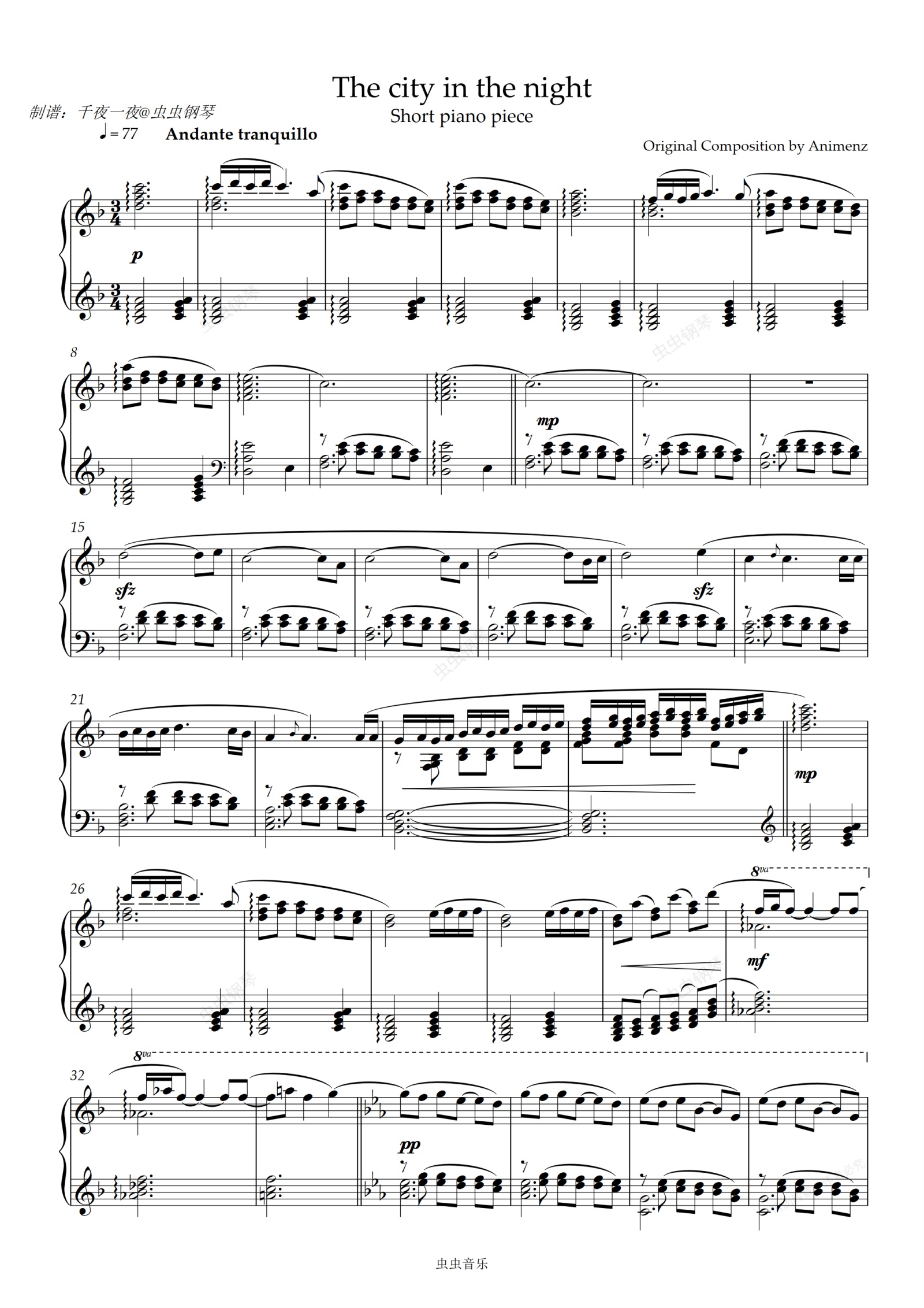 钢琴谱:【Animenzzz】The City in The Night——Animenz原创曲钢琴翻弹