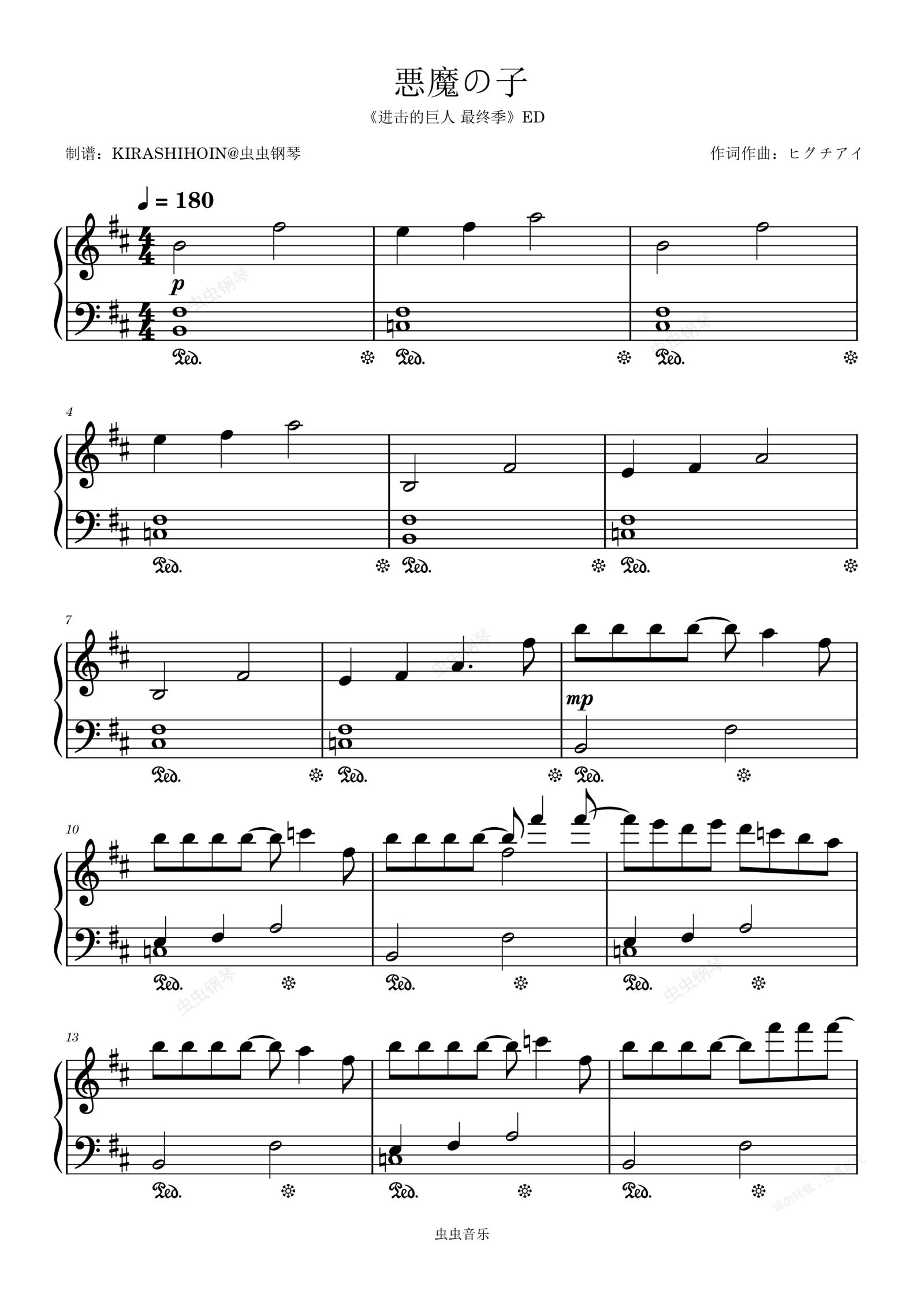 钢琴谱:恶魔之子(《进击的巨人 最终季》ED)- ヒグチアイ