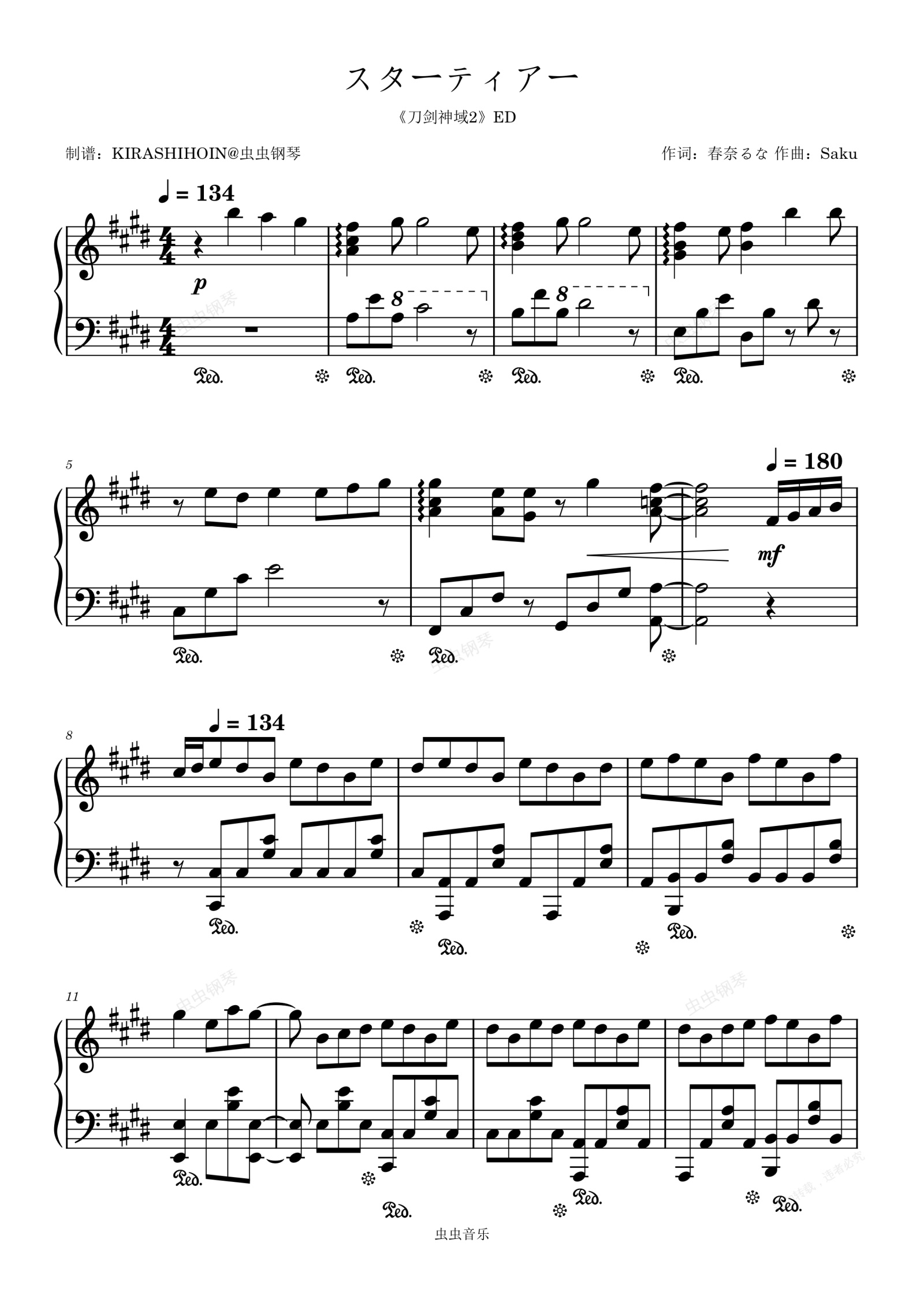 钢琴谱:スターティアー(《刀剑神域2》ED)- 春奈るな