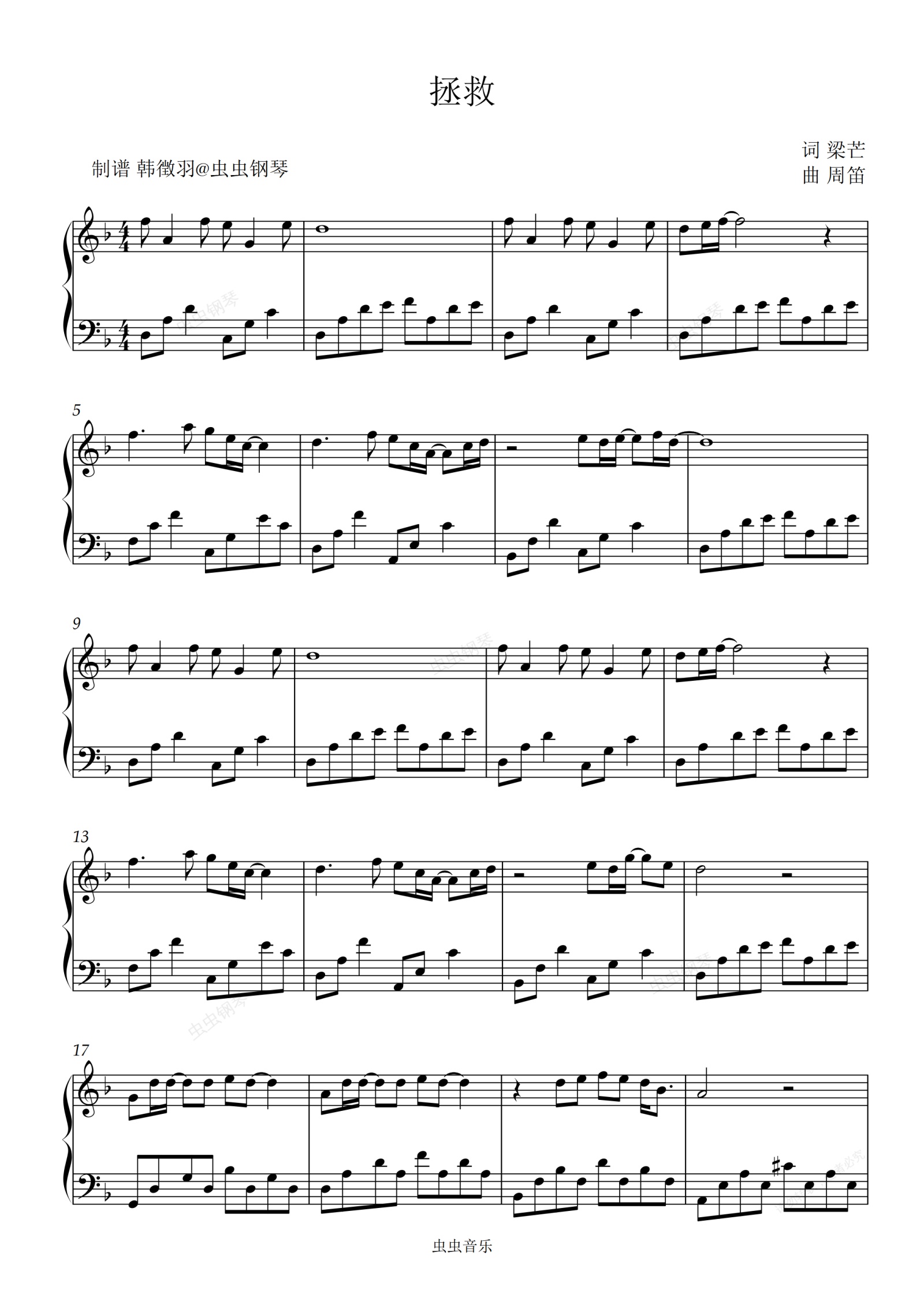 钢琴谱:拯救 孙楠 F调好听易弹