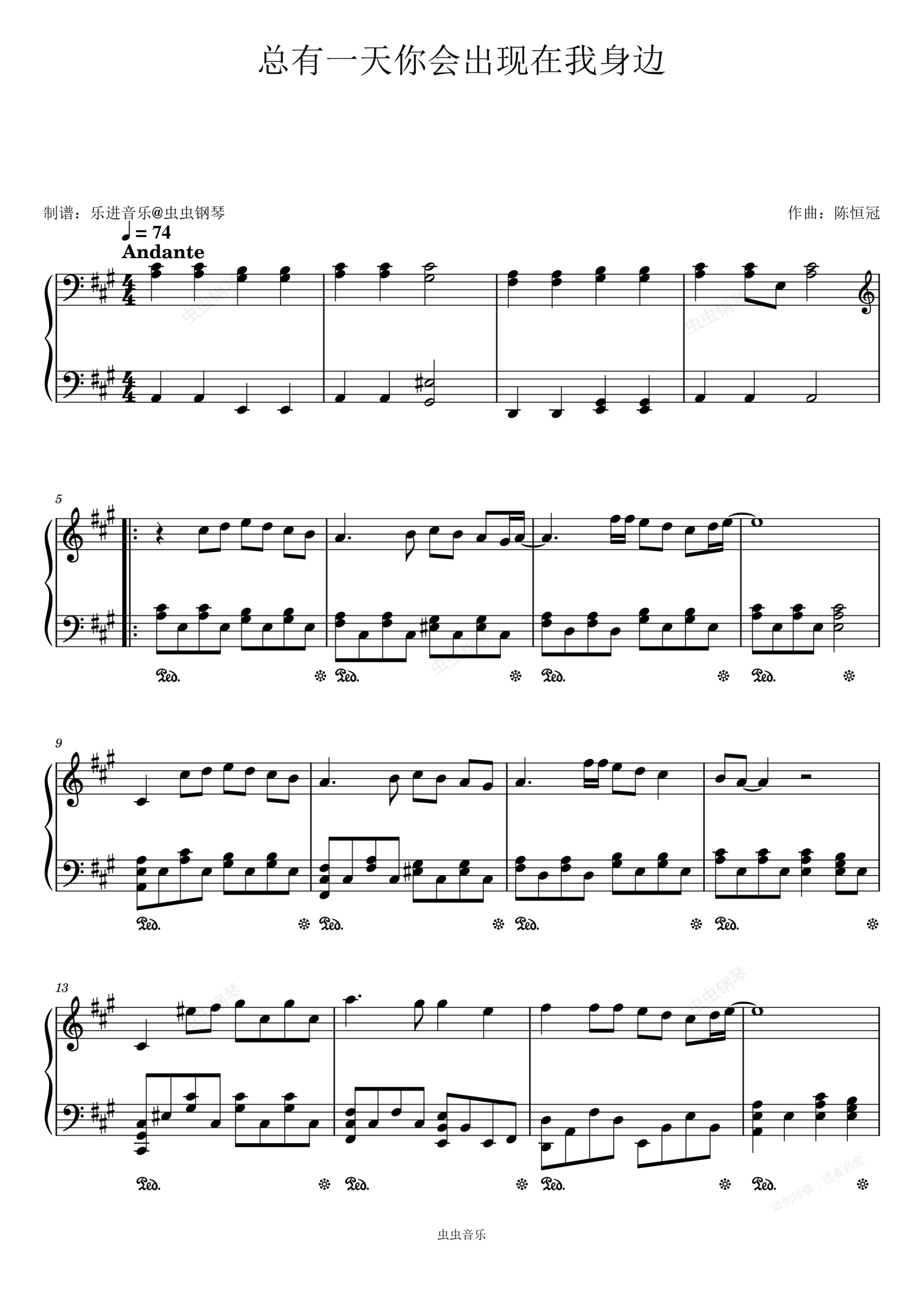 钢琴谱:《总有一天你会出现在我身边》原调还原版