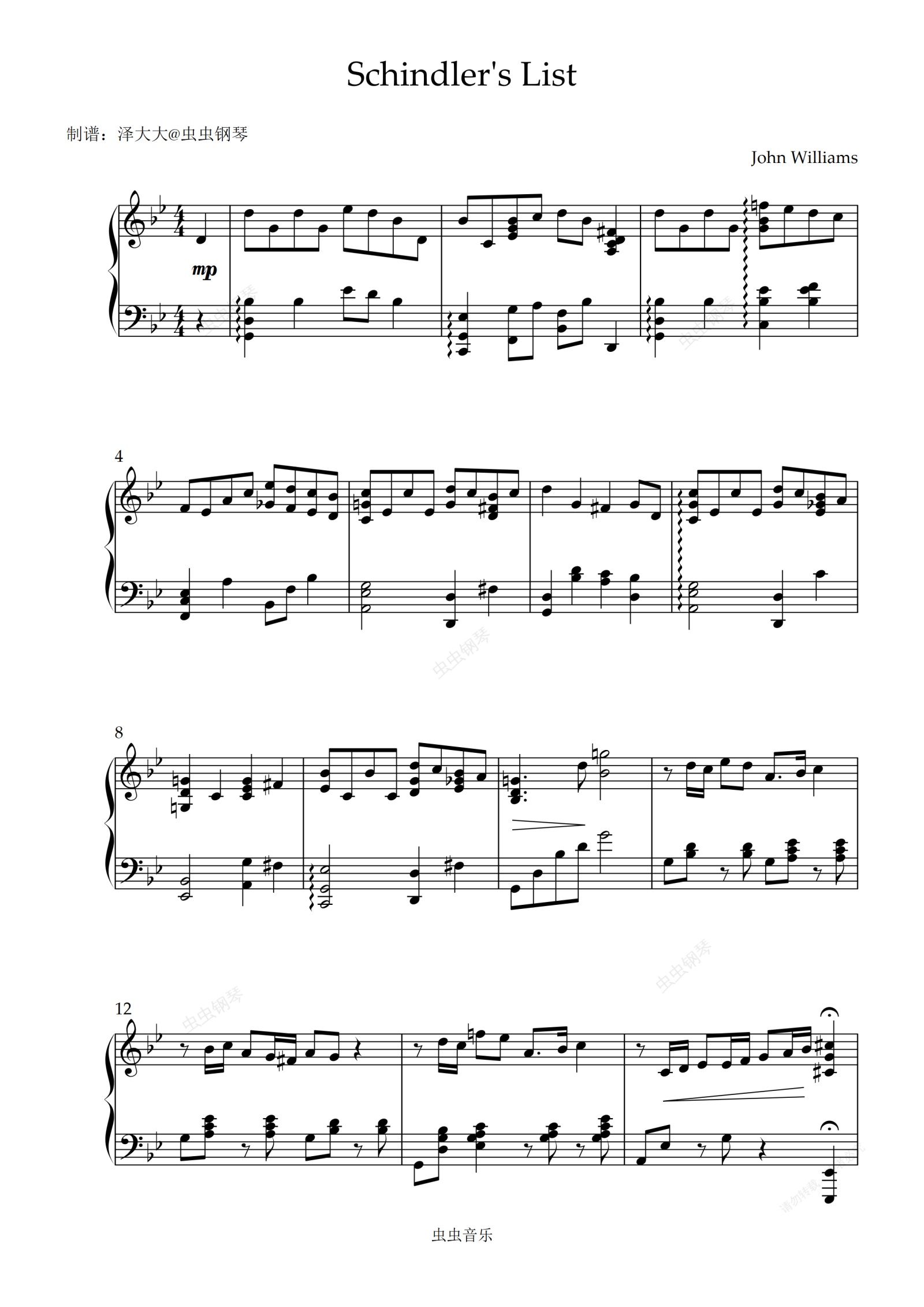 钢琴谱:Schindler's List【辛德勒的名单主题曲】泽大大Cover