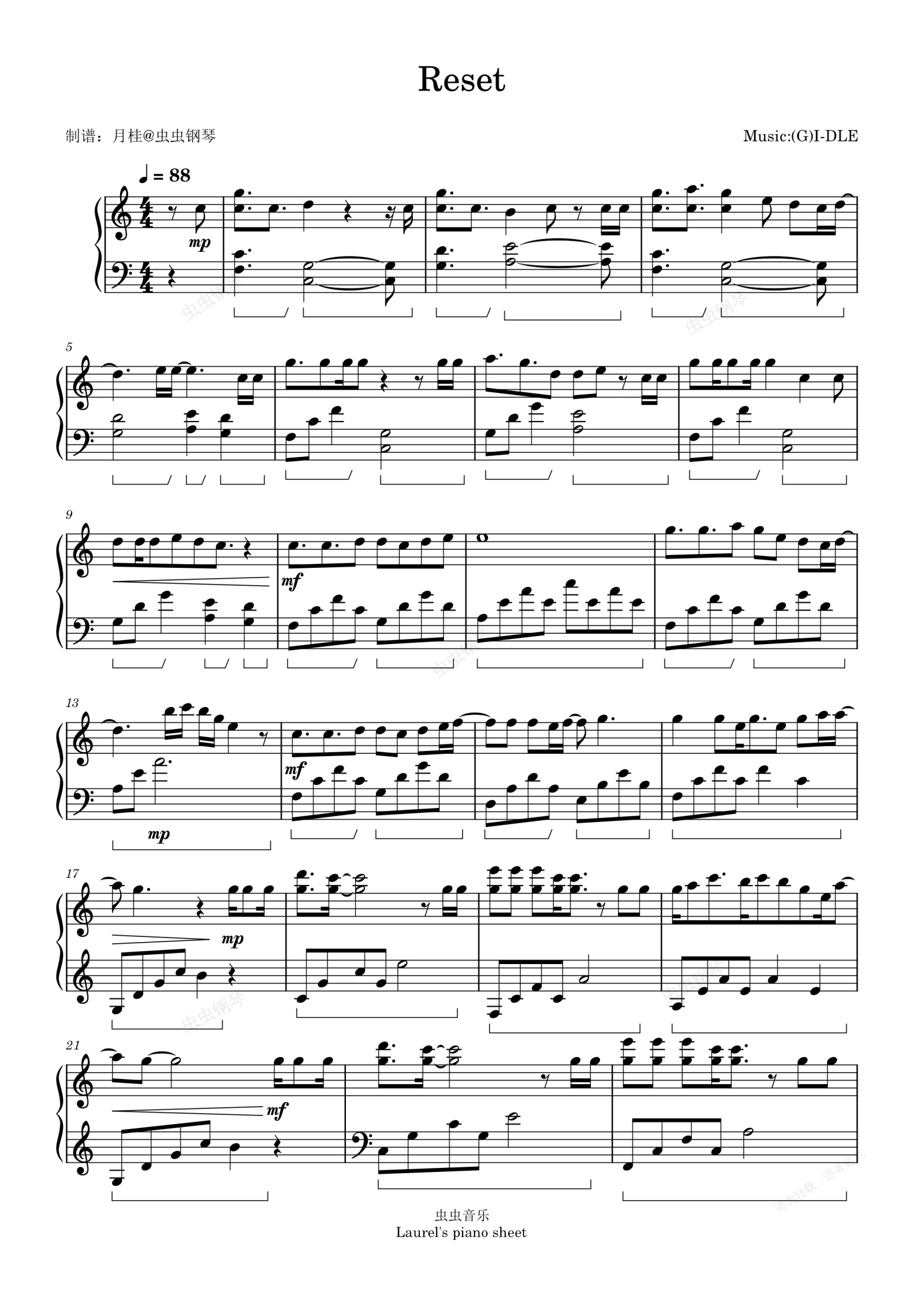 钢琴谱:Reset-(G)I-DLE专辑《I LOVE》收录曲