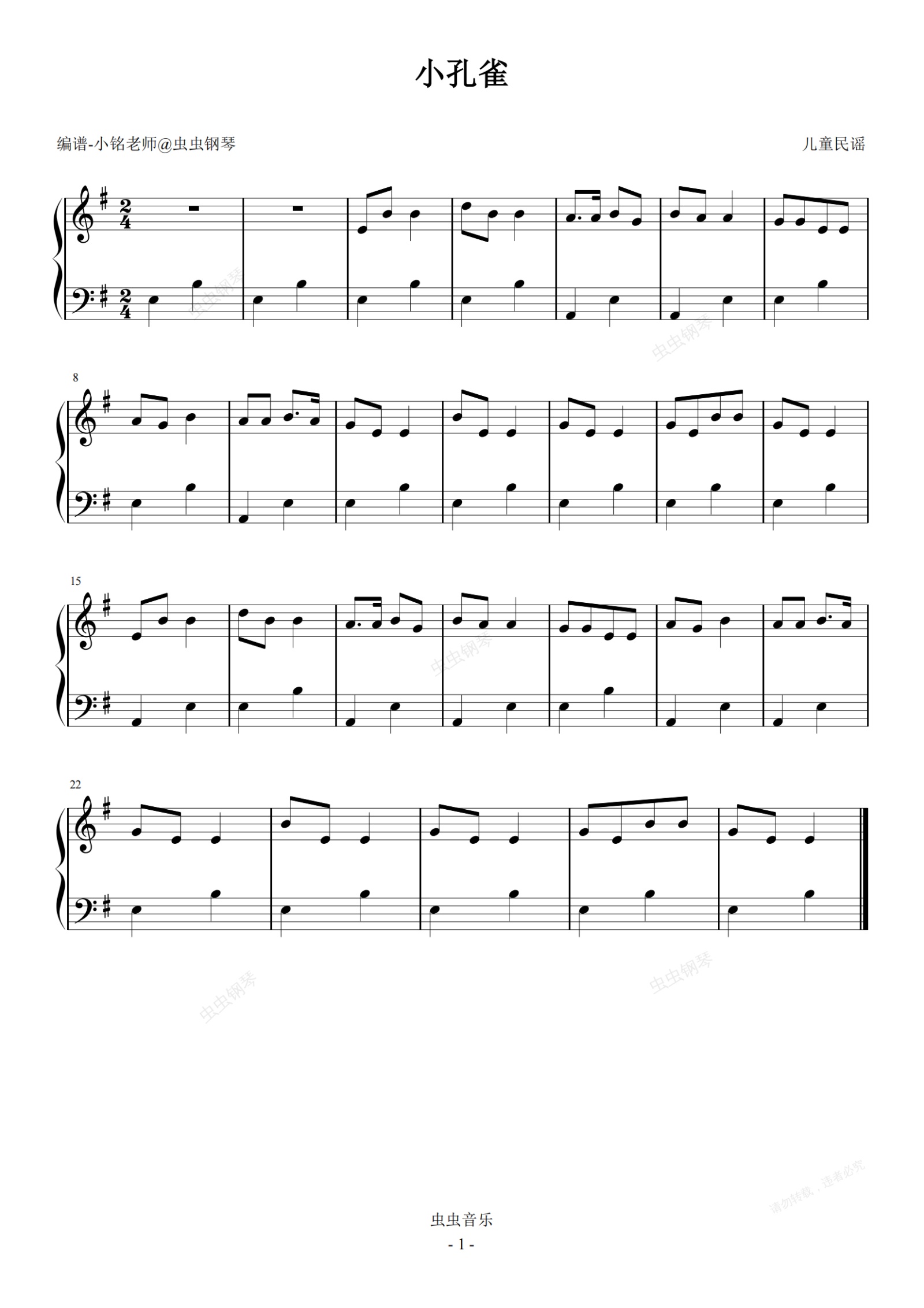 钢琴谱:小孔雀【快乐学儿歌 小汤2】