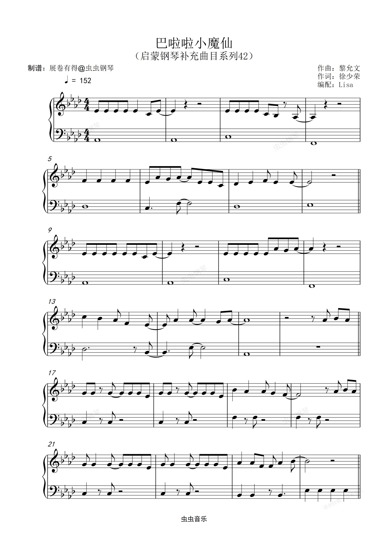 钢琴谱:巴啦啦小魔仙(小汤4水平)