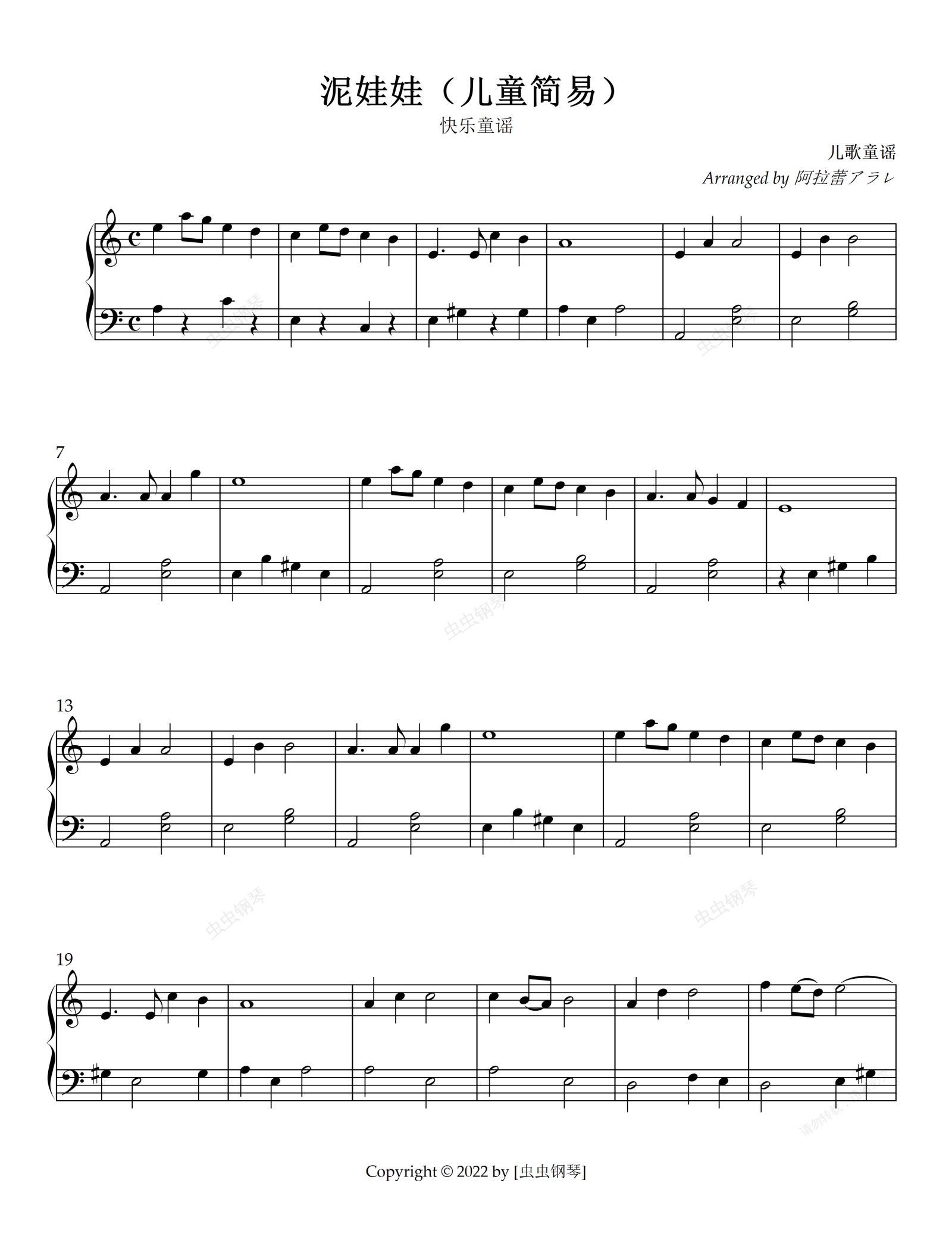 钢琴谱:泥娃娃(儿童简易)