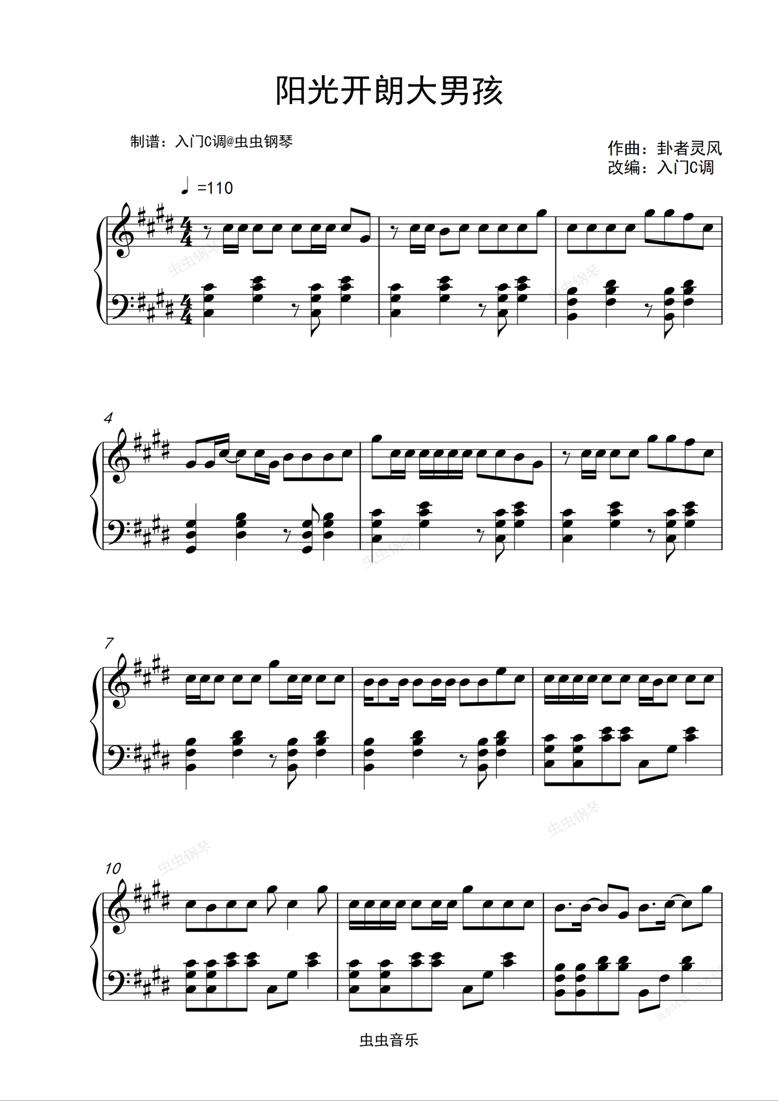 钢琴谱:卦者灵风《 阳光开朗大男孩》原调洗脑版