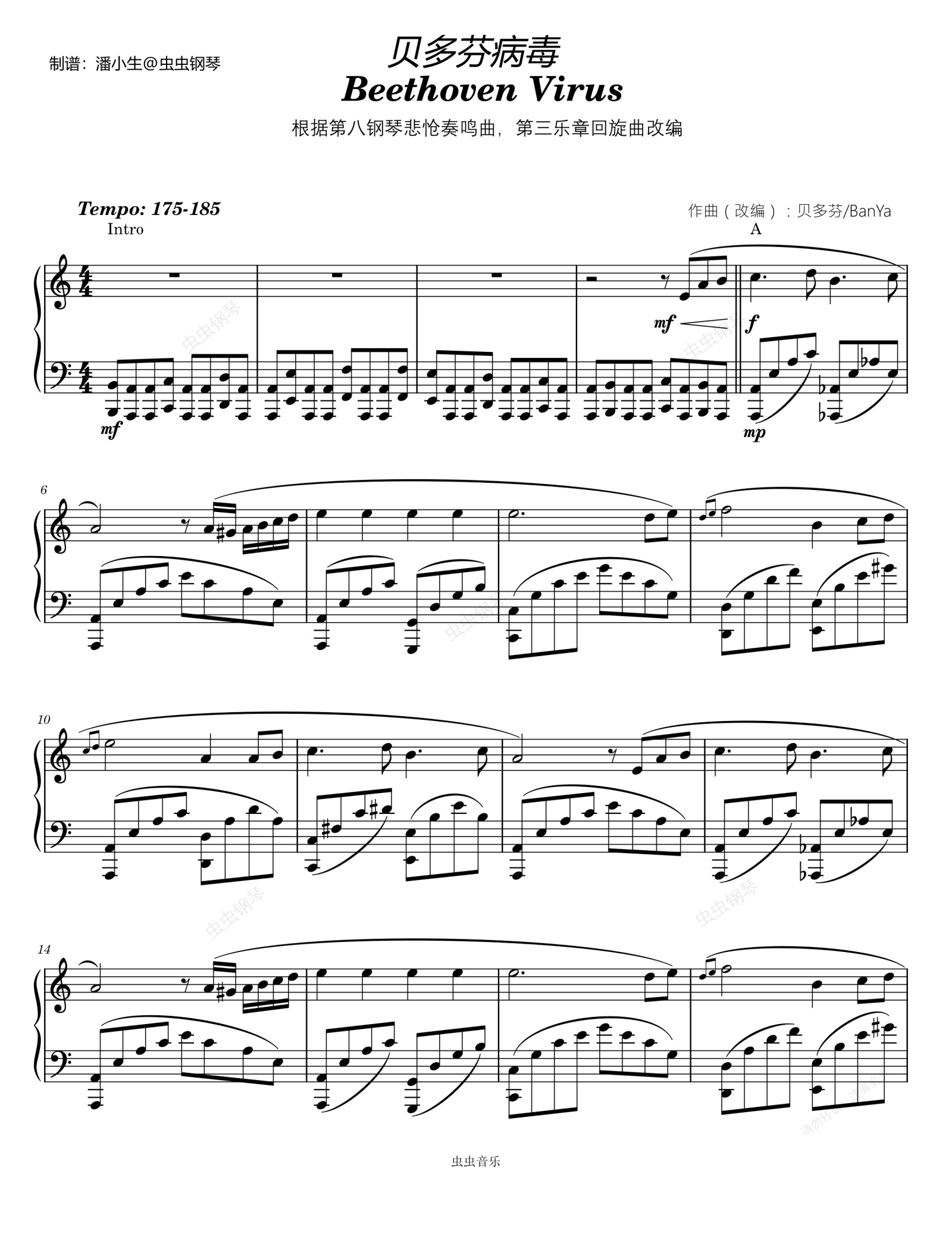 钢琴谱:贝多芬病毒,Beethoven Virus,钢琴独奏谱,改编自悲怆奏鸣曲,第三乐章
