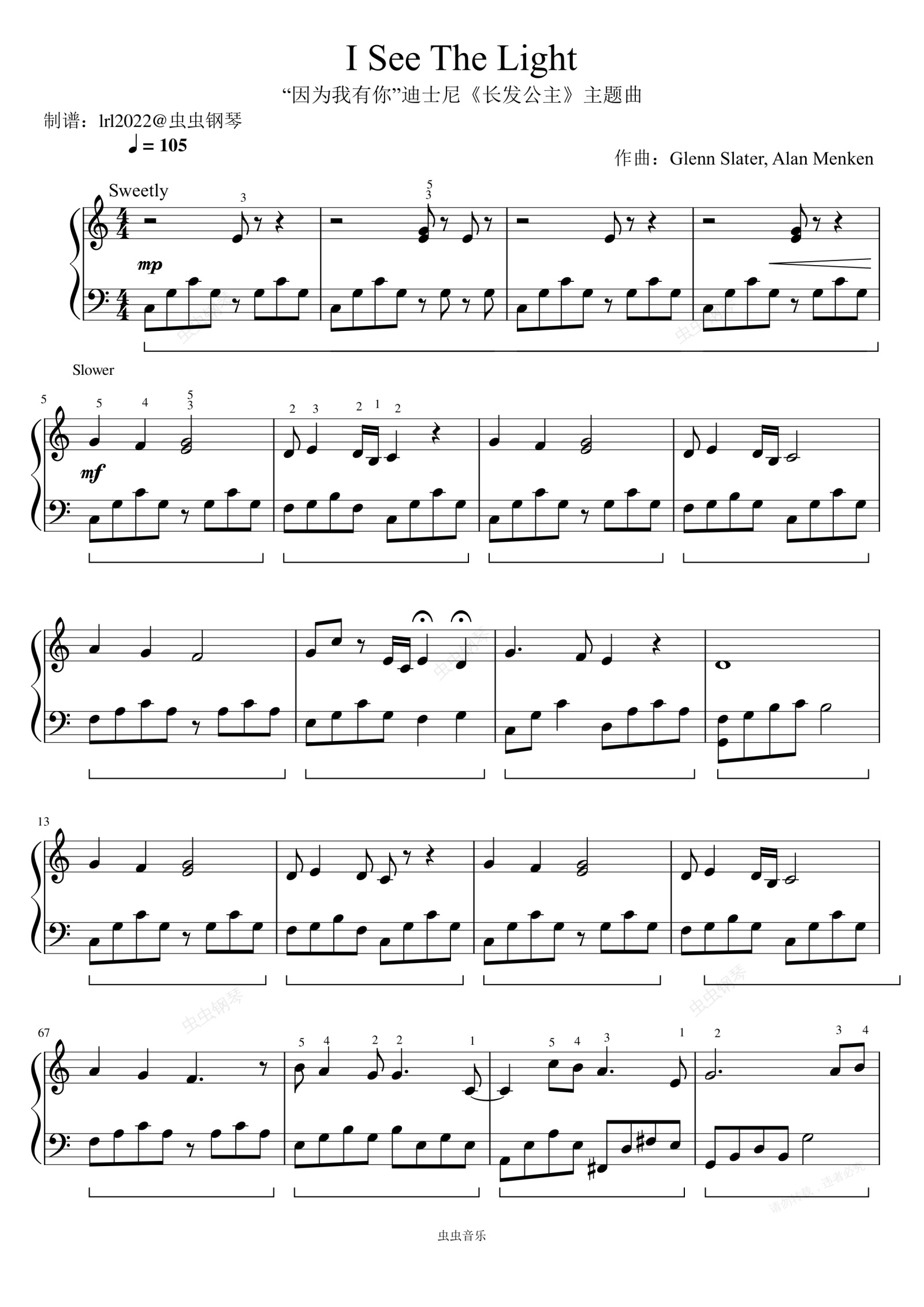 钢琴谱:I See The Light-《因为我有你》-长发公主(魔发奇缘)主题曲-Tangled