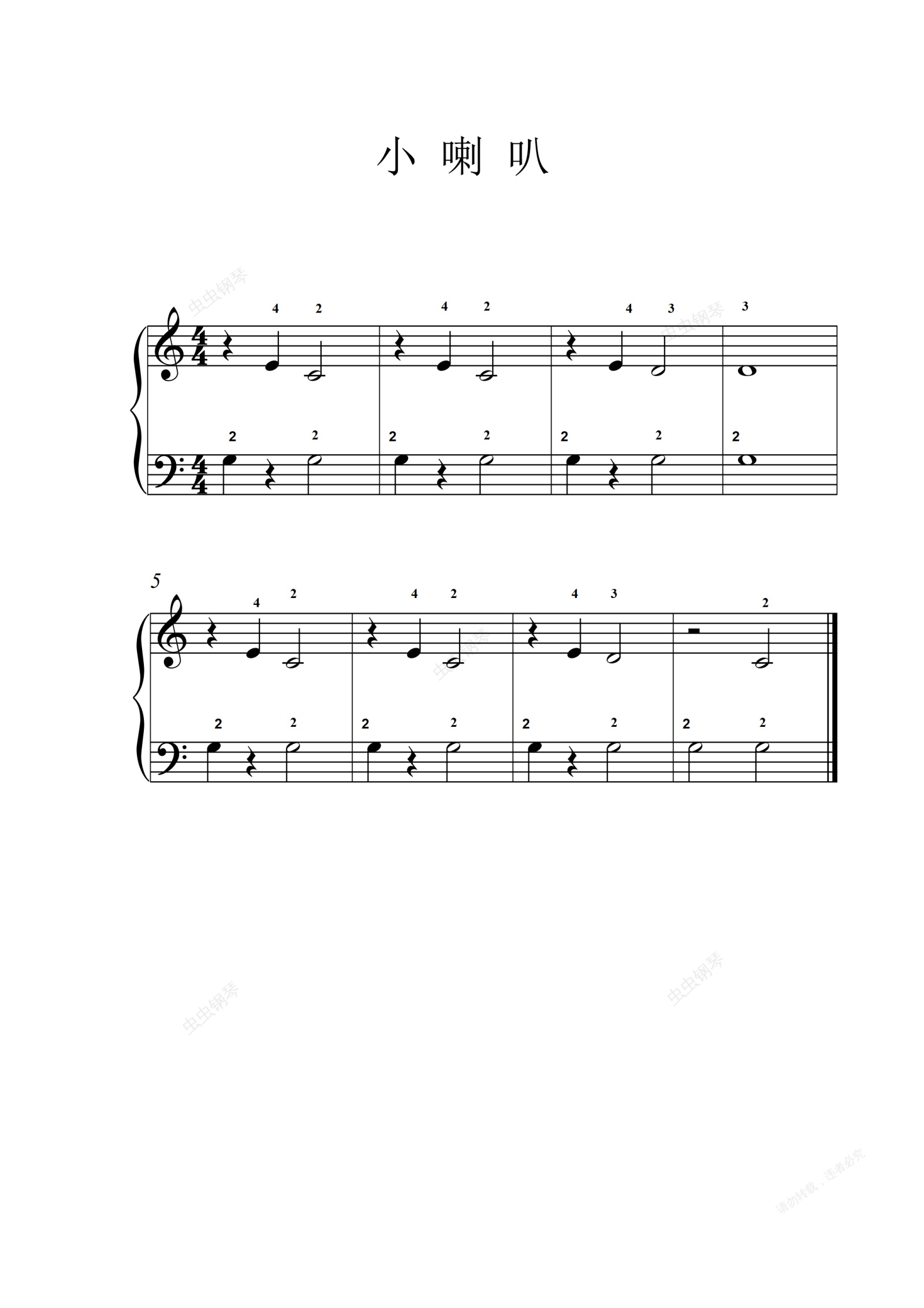 钢琴谱:小喇叭