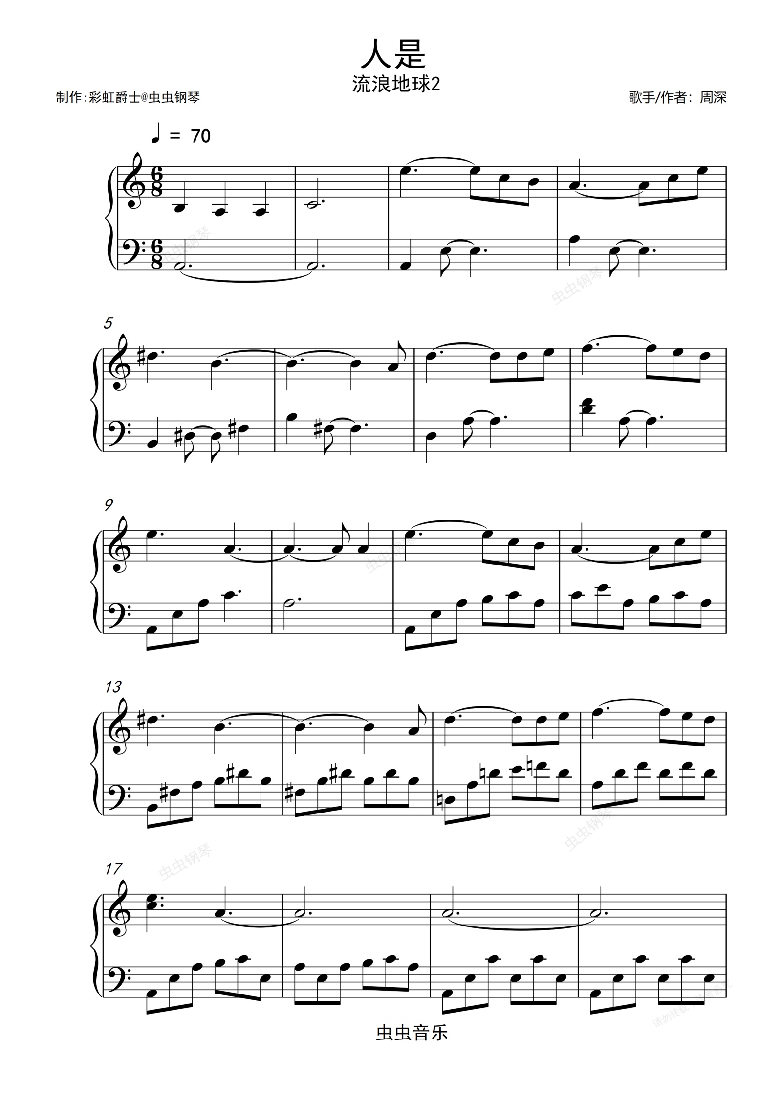钢琴谱:人是-流浪地球2定义主题曲 周深