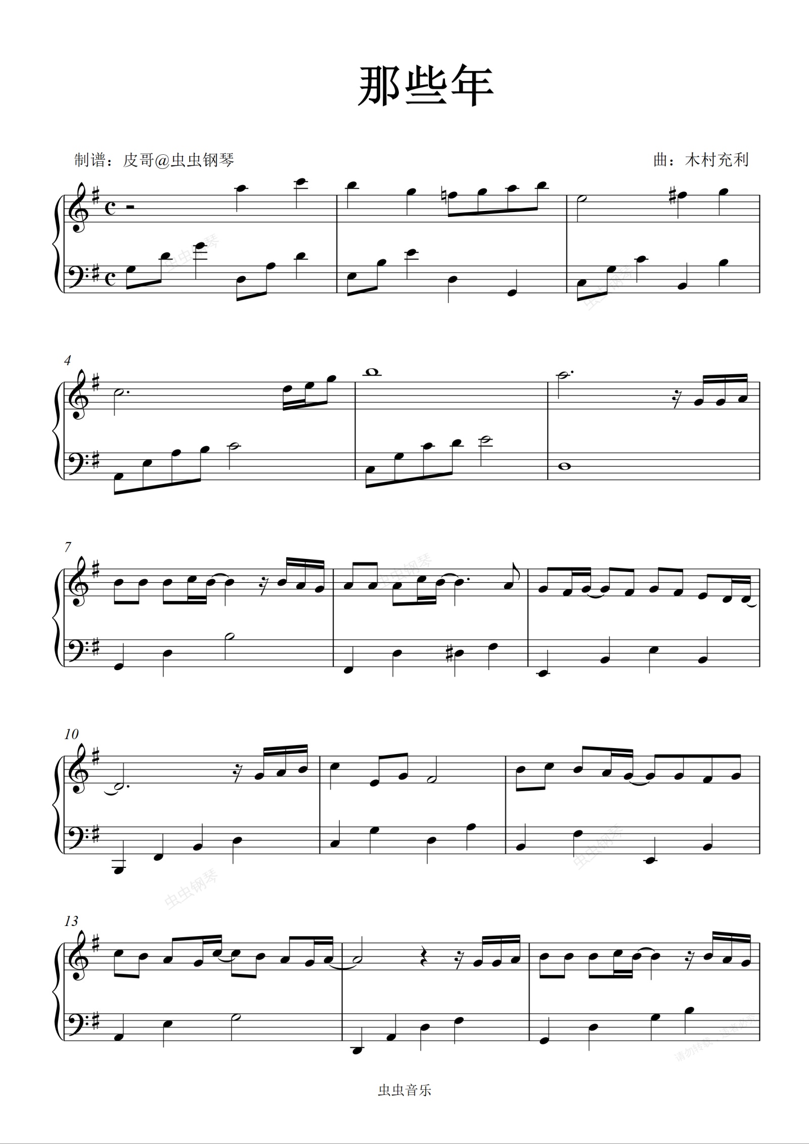 钢琴谱:那些年 零基础版本