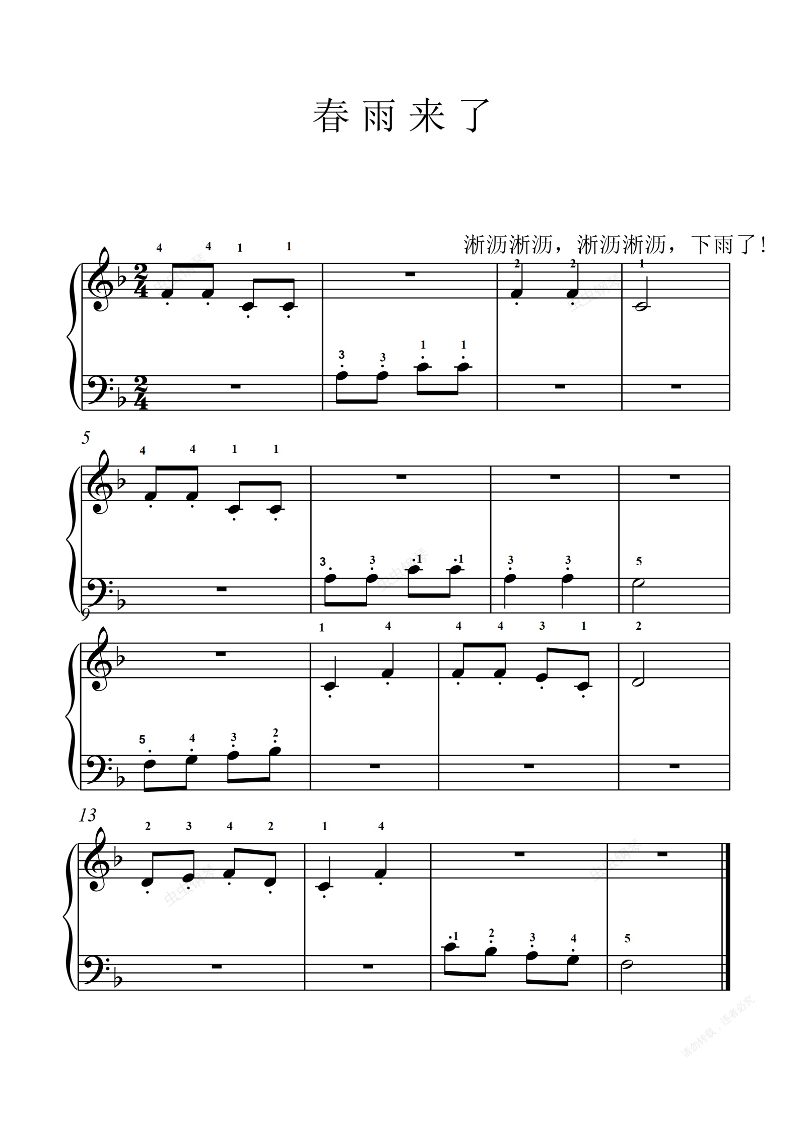 钢琴谱:春雨来了
