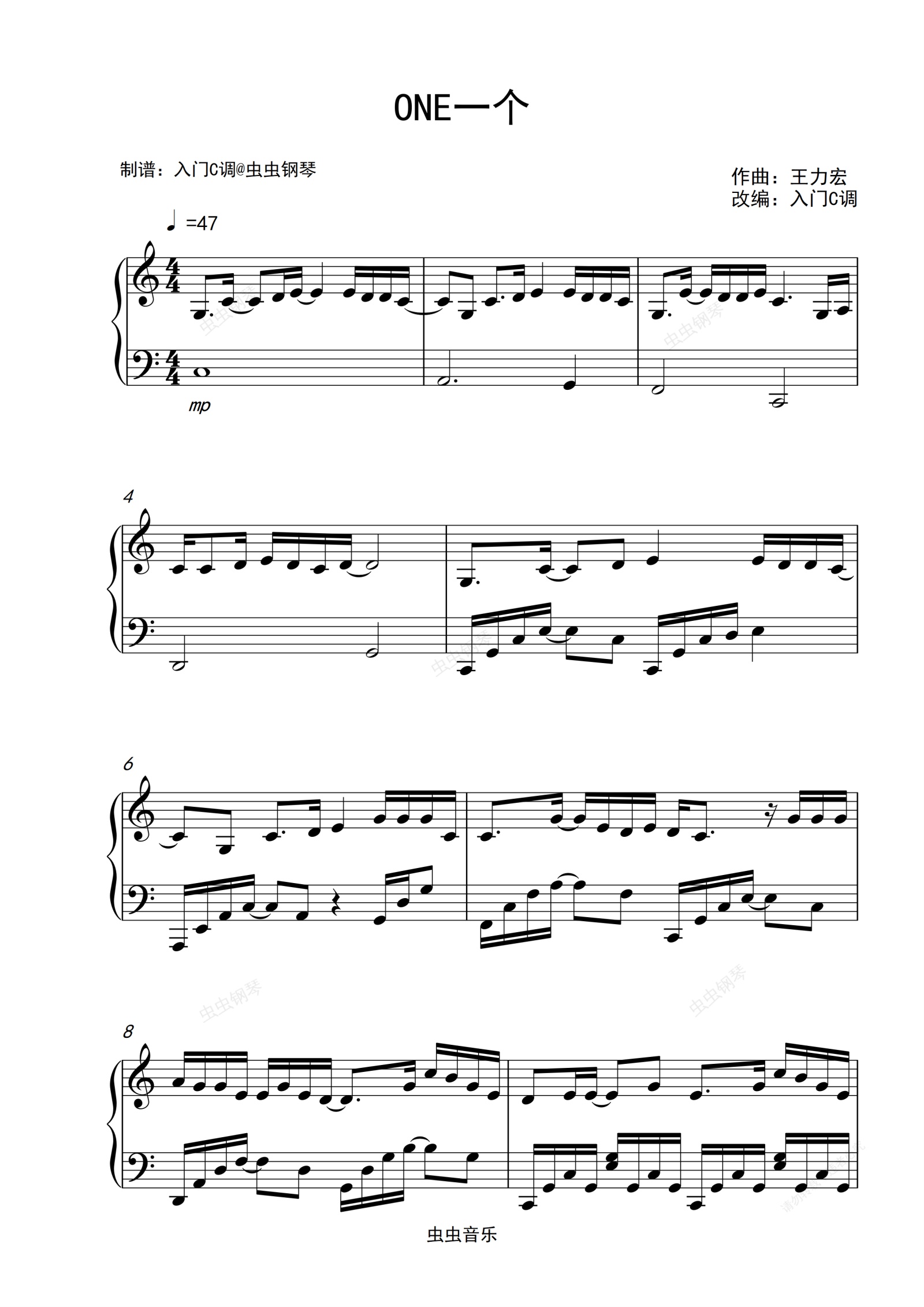 钢琴谱:王力宏live现场《ONE一个》入门C调抒情版