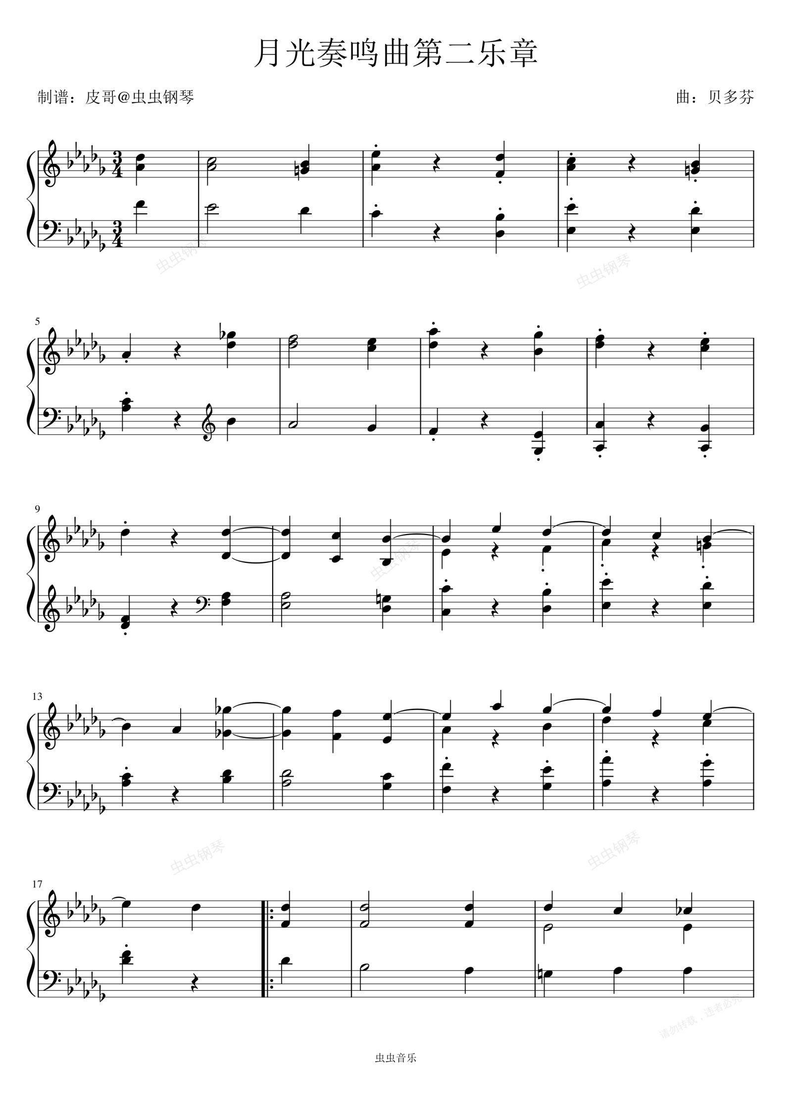 钢琴谱:贝多芬月光奏鸣曲第二乐章 原版钢琴谱