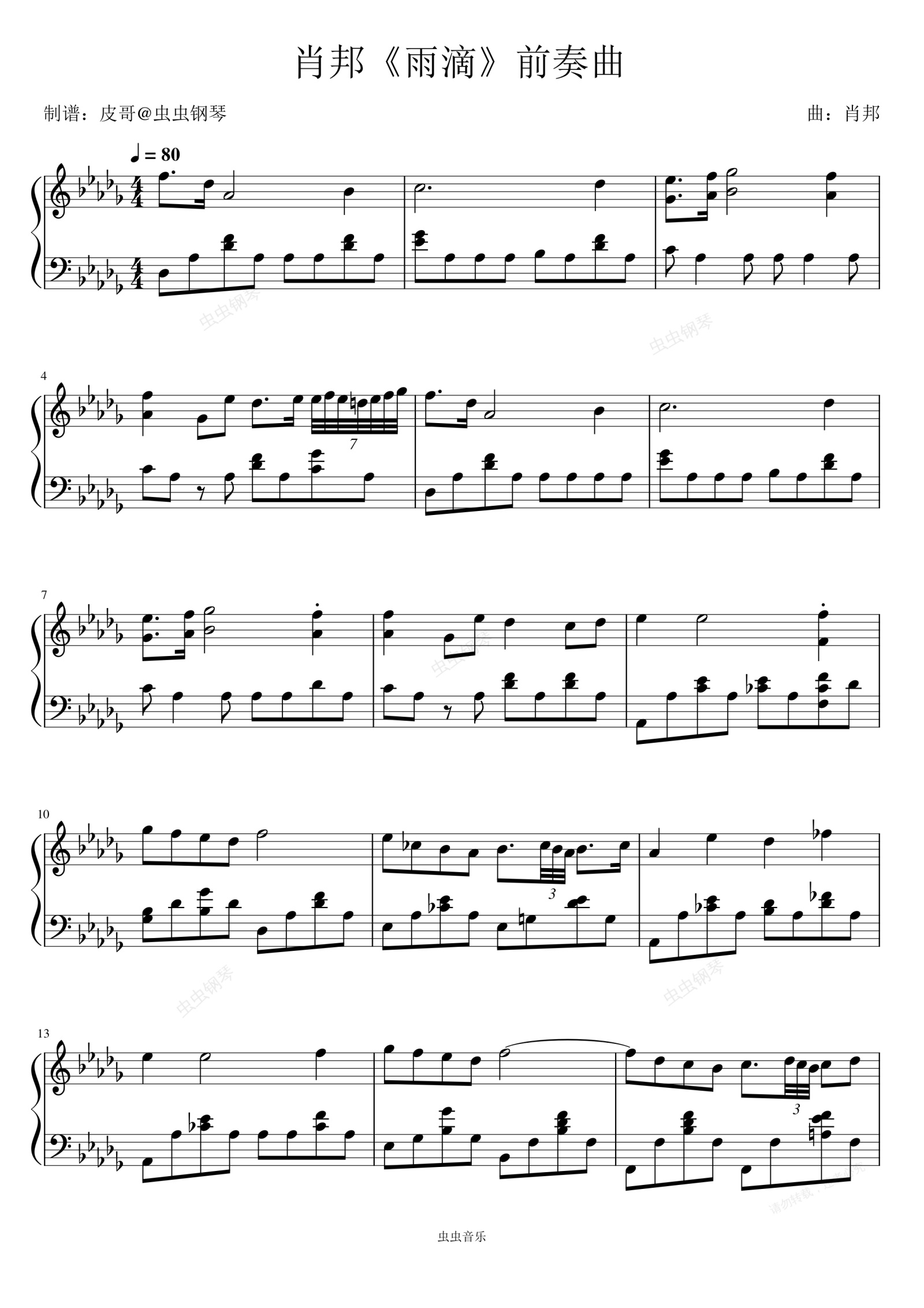 钢琴谱:肖邦《雨滴》前奏曲 Op.28 No.15  零基础版本