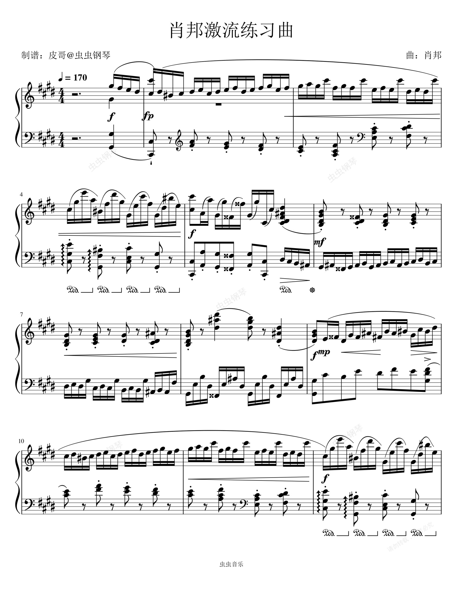 钢琴谱:肖邦激流练习曲 Op.10 No.4 原版钢琴谱