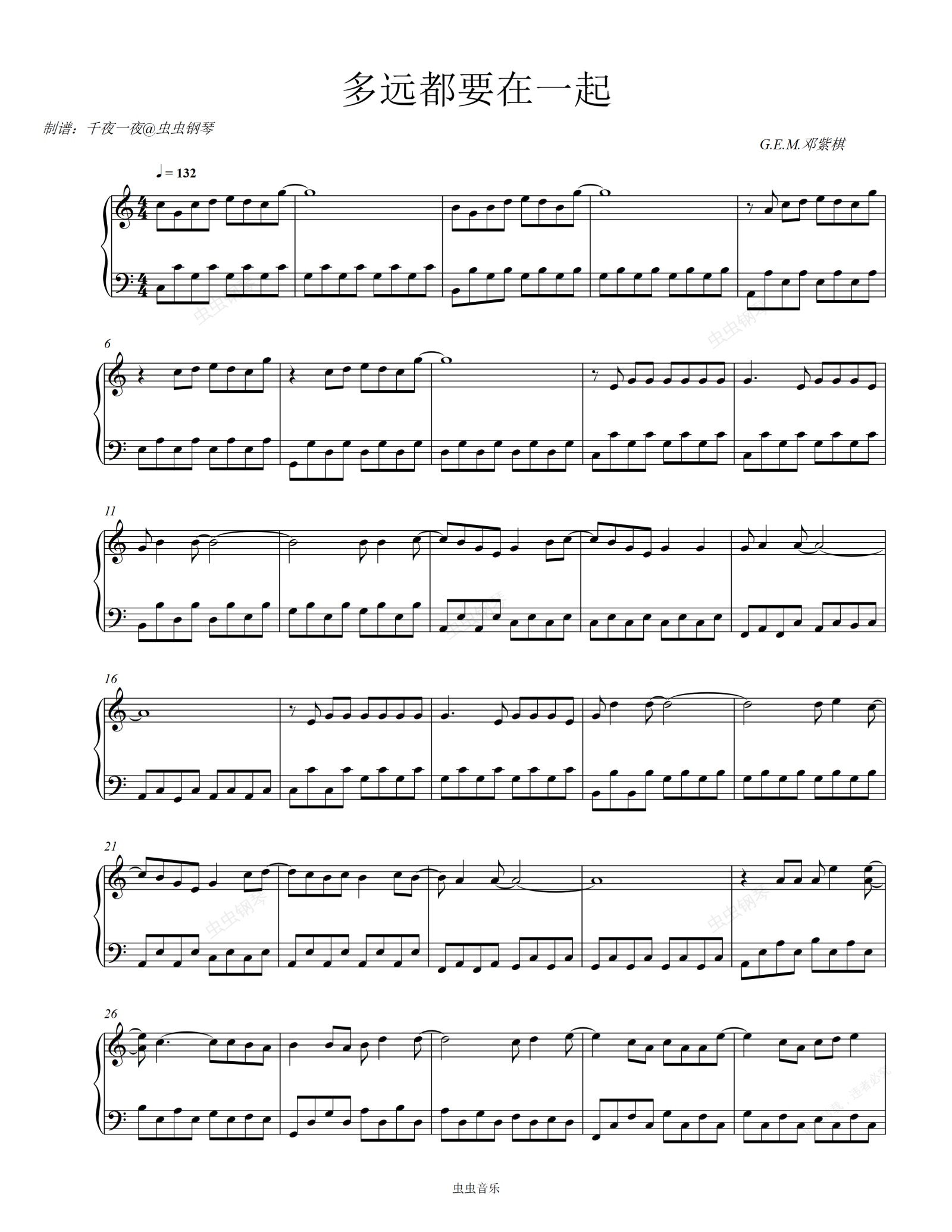 钢琴谱:邓紫棋演唱会版《多远都要在一起》,太好听了。