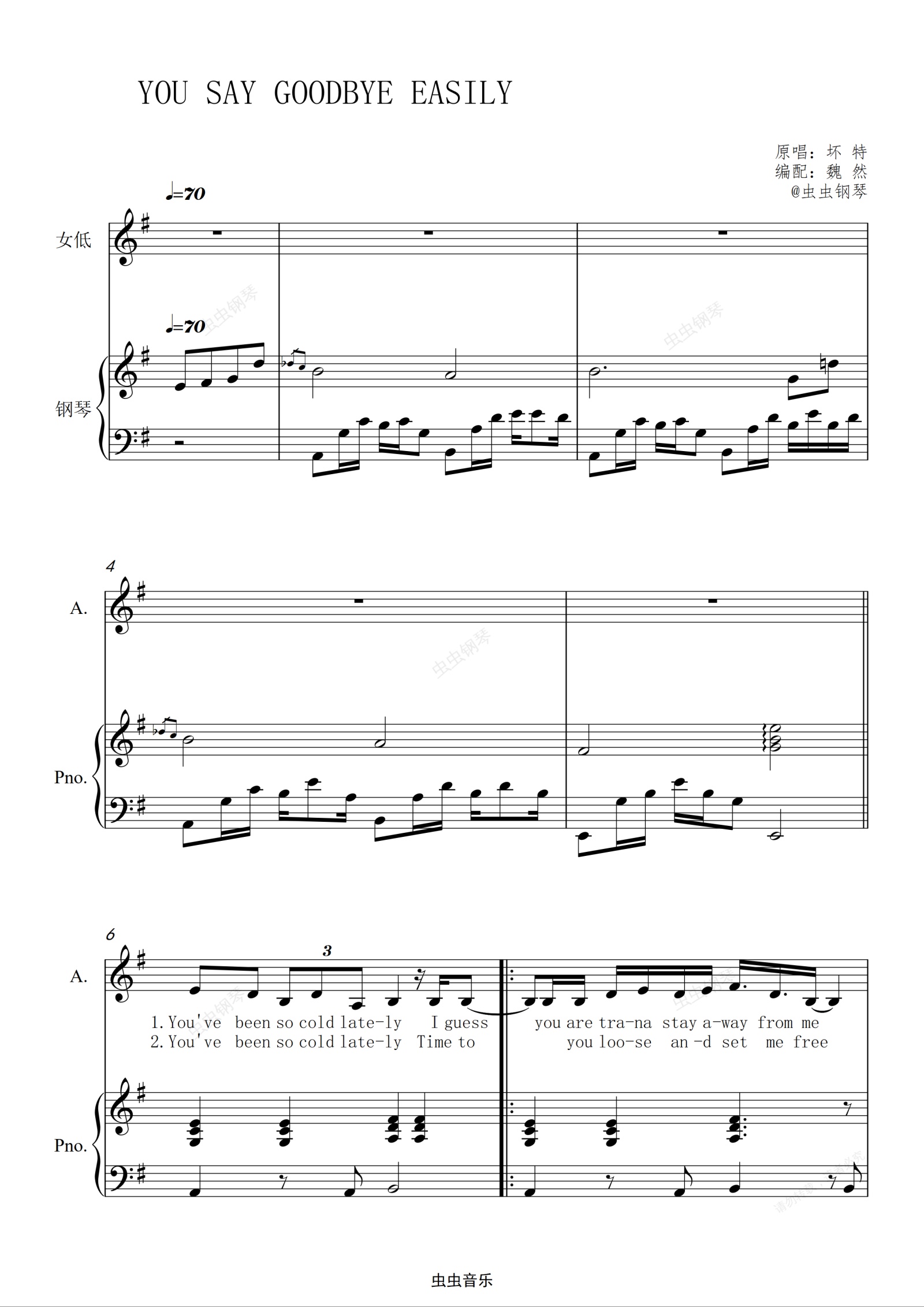 钢琴谱:You Say Goodbye Easily(正谱)——『忧伤歌声』