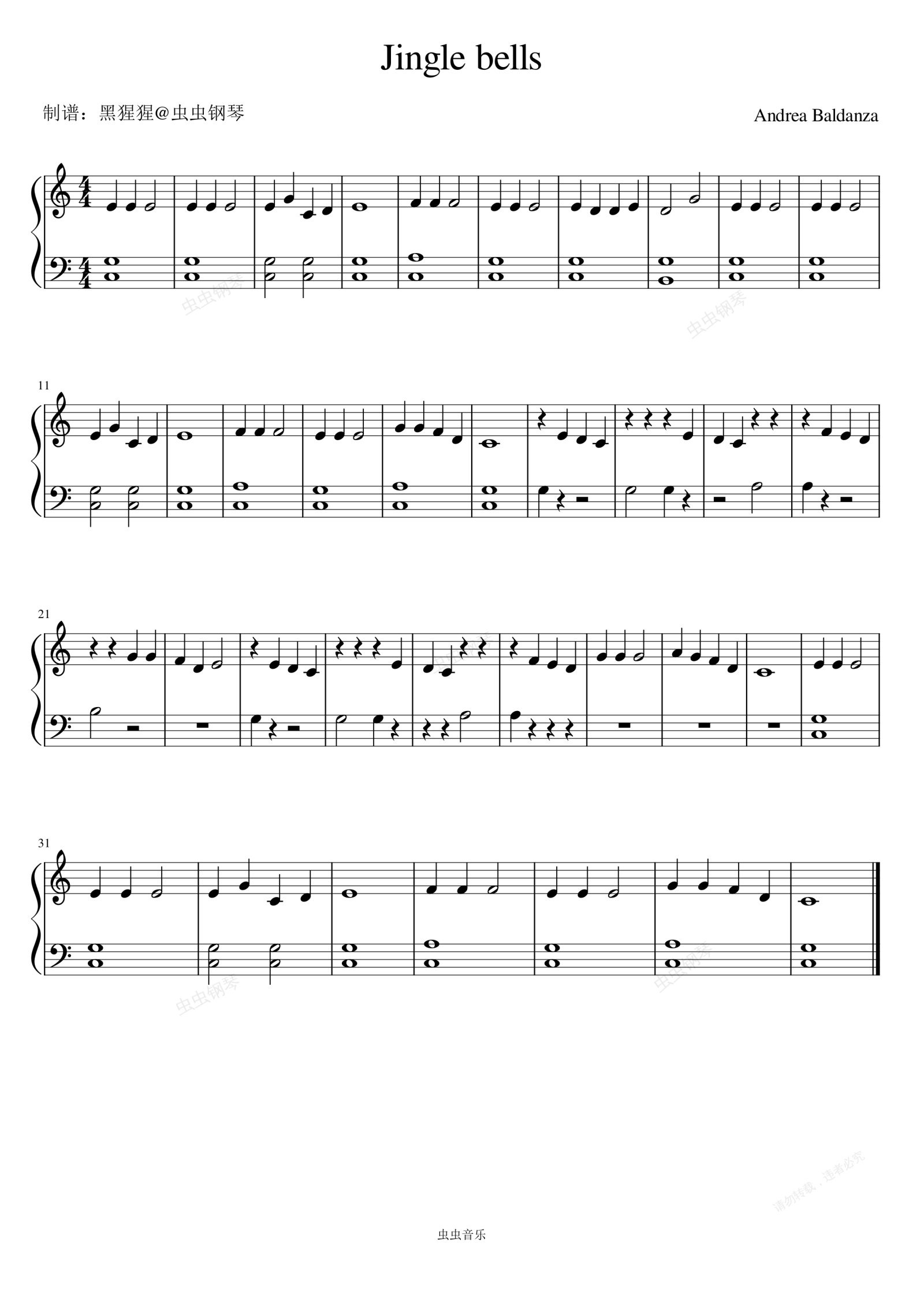 钢琴谱:铃儿响叮当 詹姆斯·皮尔庞特 C调