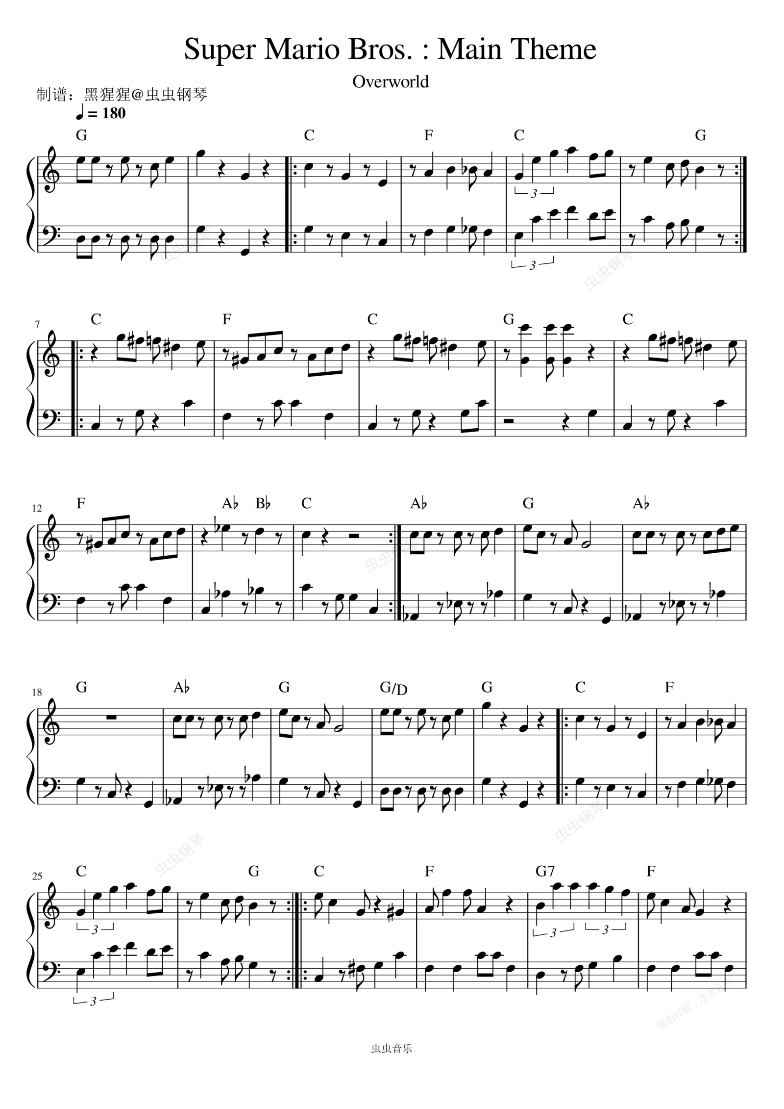 钢琴谱:超级马里奥兄弟 近藤浩二 C调