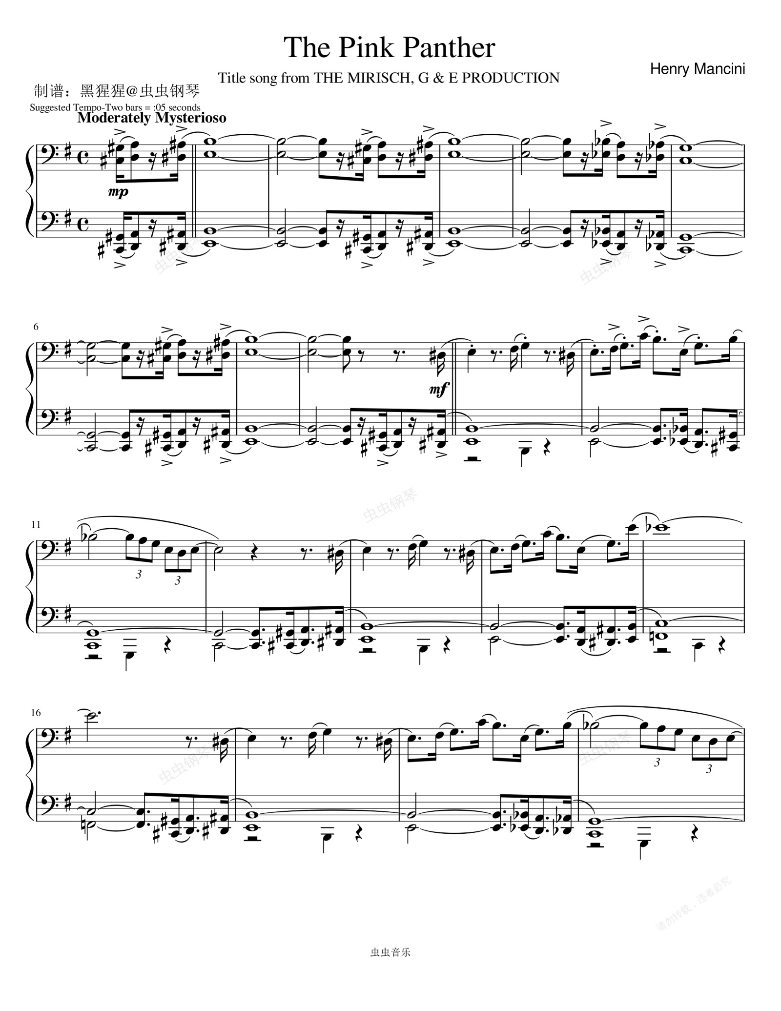 钢琴谱:粉红豹 亨利·曼奇尼 G大调