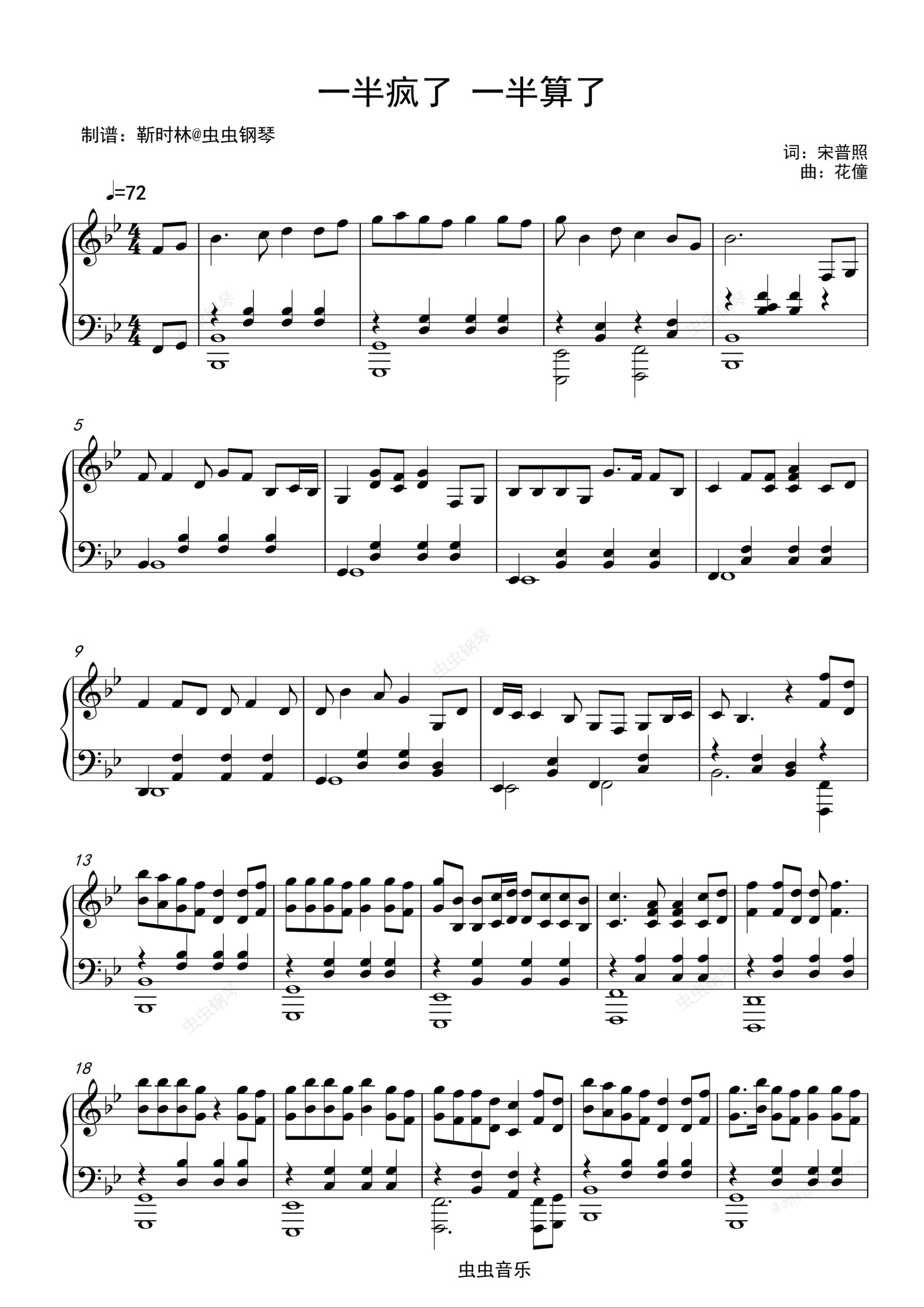 钢琴谱:《一半疯了 一半算了》原调简易弹奏
